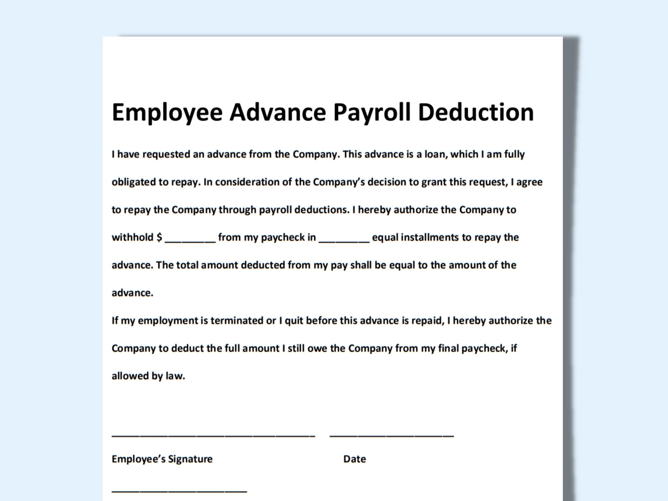 Say goodbye to manual calculations and formatting errors. Our user-friendly template allows you to input the necessary information, such as employee details, advance amount, and repayment terms, with ease.