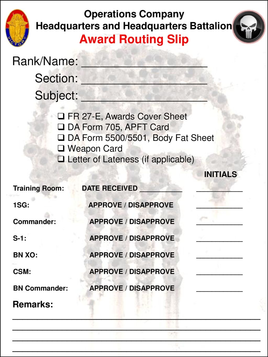 Army Routing Slip Template