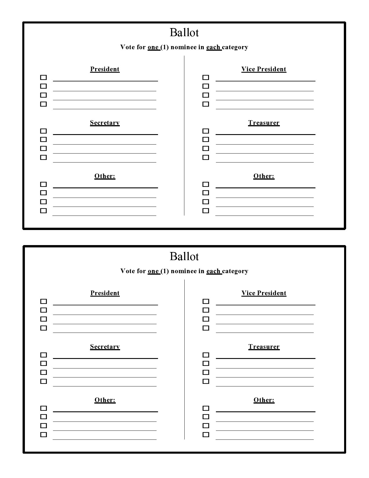 Free Printable Ballot Templates Word PDF Sample Voting