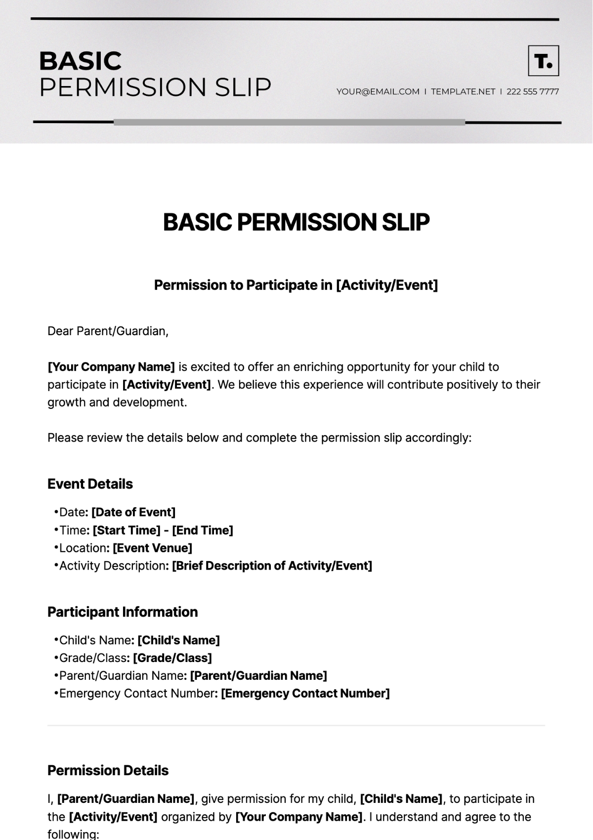 Don’t let the stress of creating a permission slip weigh you down. Download our basic template today and make the permission process a smooth and hassle-free experience for both you and the parents or guardians involved.