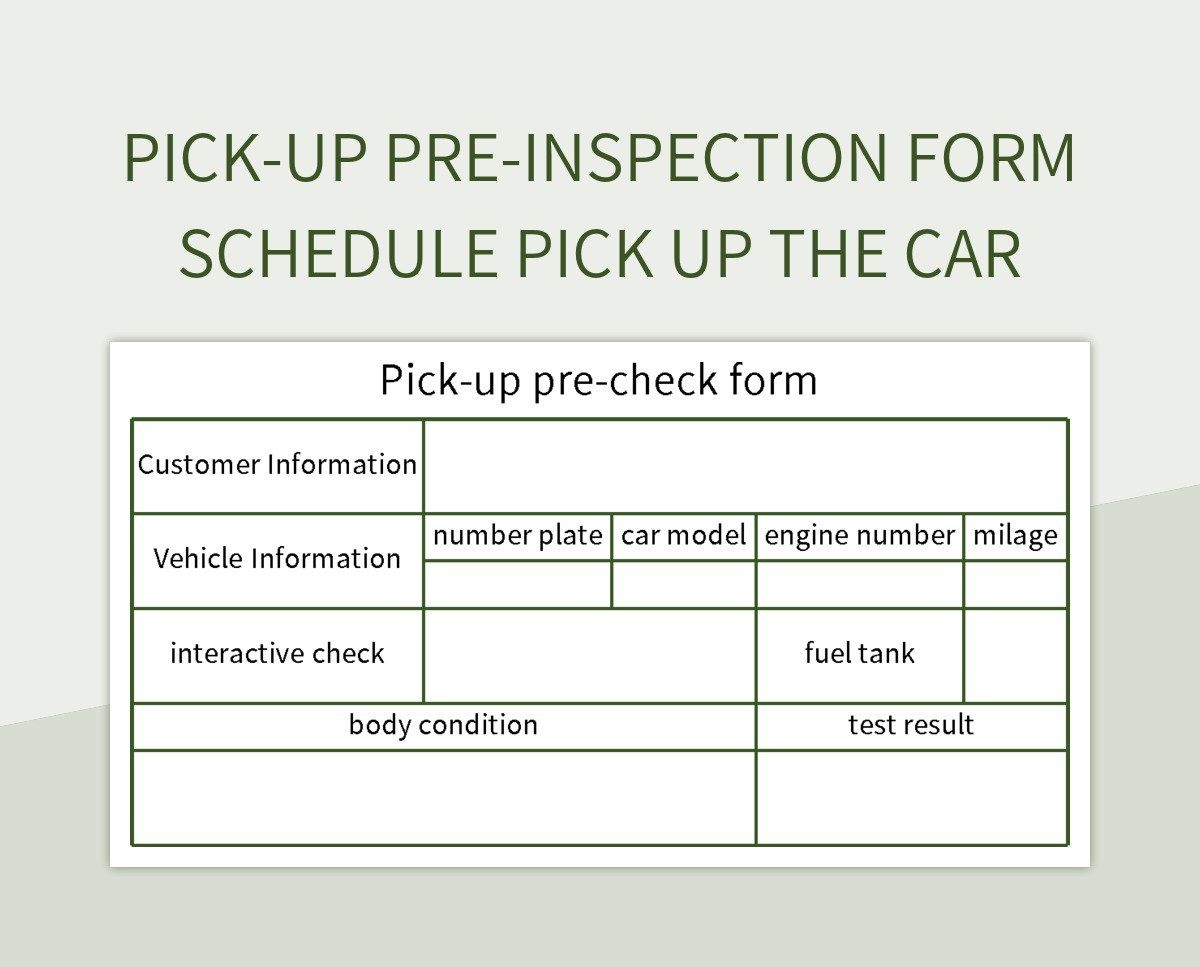 Pick up Pre inspection Form Schedule Pick Up The Car Excel Template And Google Sheets File For Free Download Slidesdocs