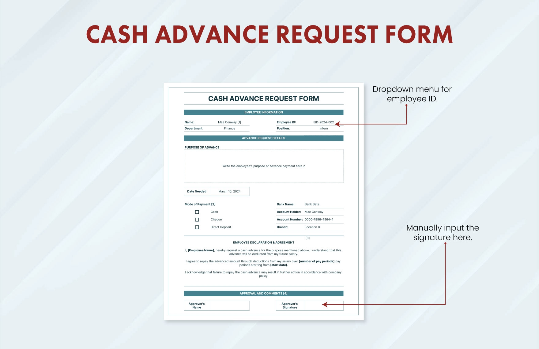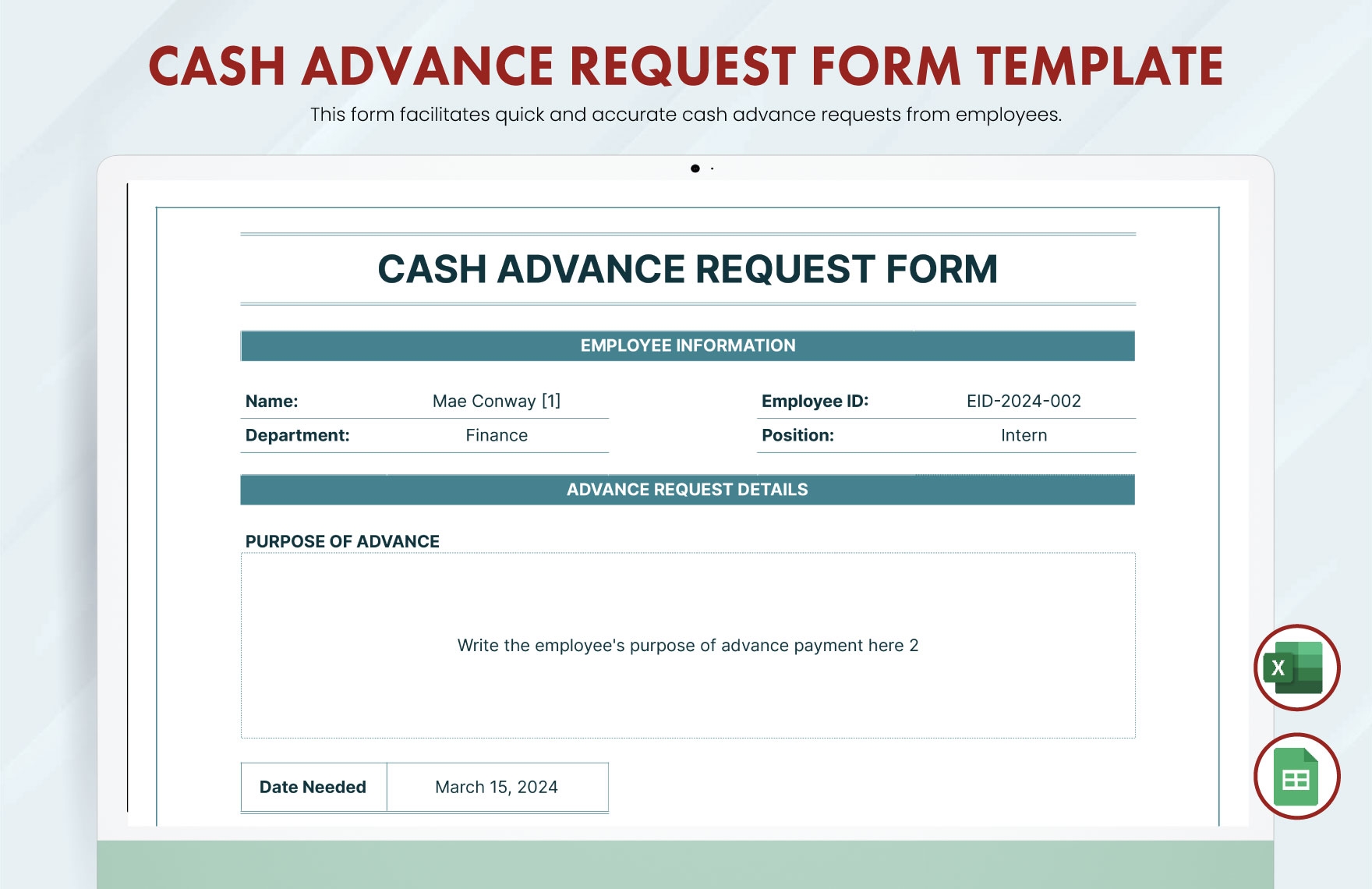 Cash Advance Request Form Template In Google Sheets Excel Download Template