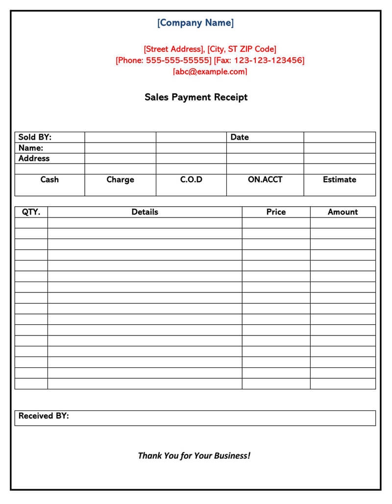 Free Cash Payment Receipt Template PDF Word EForms