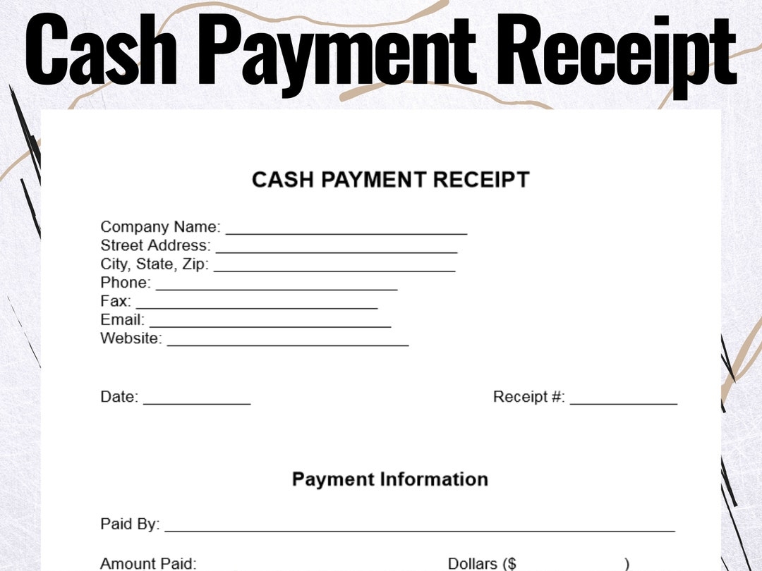 Cash Payment Receipt Cash Payment Receipt Forms Cash Payment Receipt Template Etsy