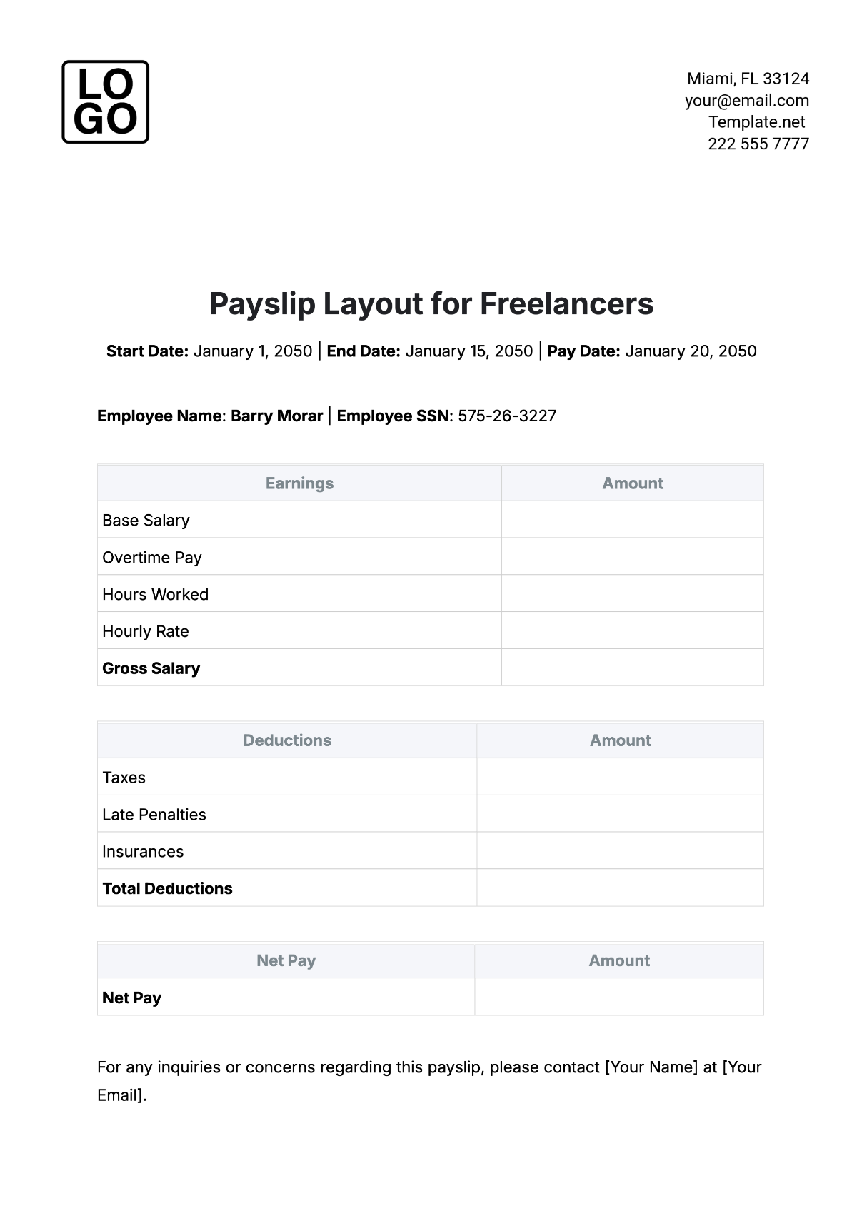 Free Cash Payment Payslip Template To Edit Online