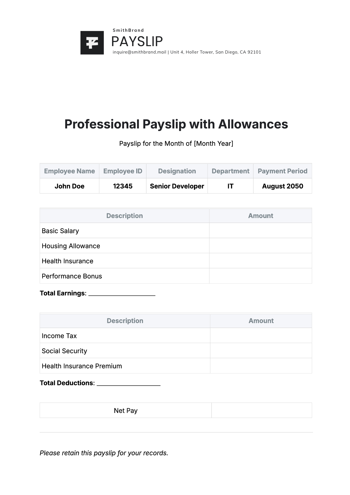 With a cash salary slip template, you can easily input your earnings and deductions each month, allowing you to see exactly how much money you’re bringing in and where it’s going. This can be incredibly helpful for budgeting and planning for the future.
