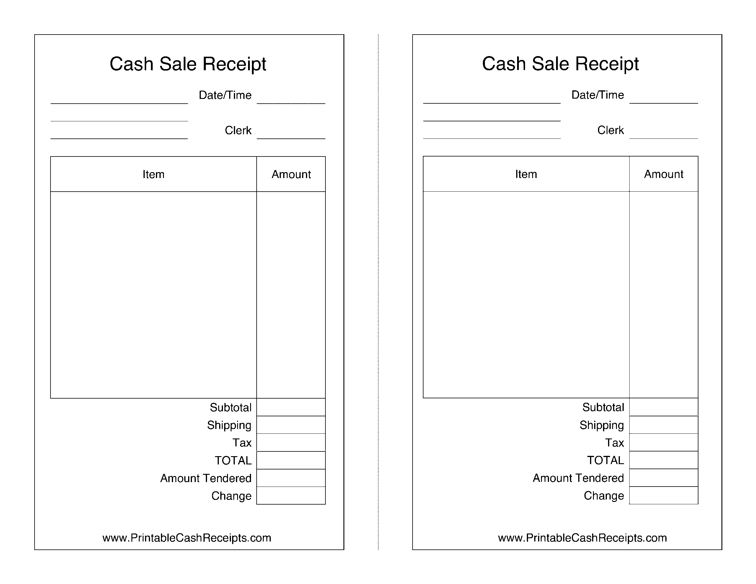 Free Cash Receipt Templates