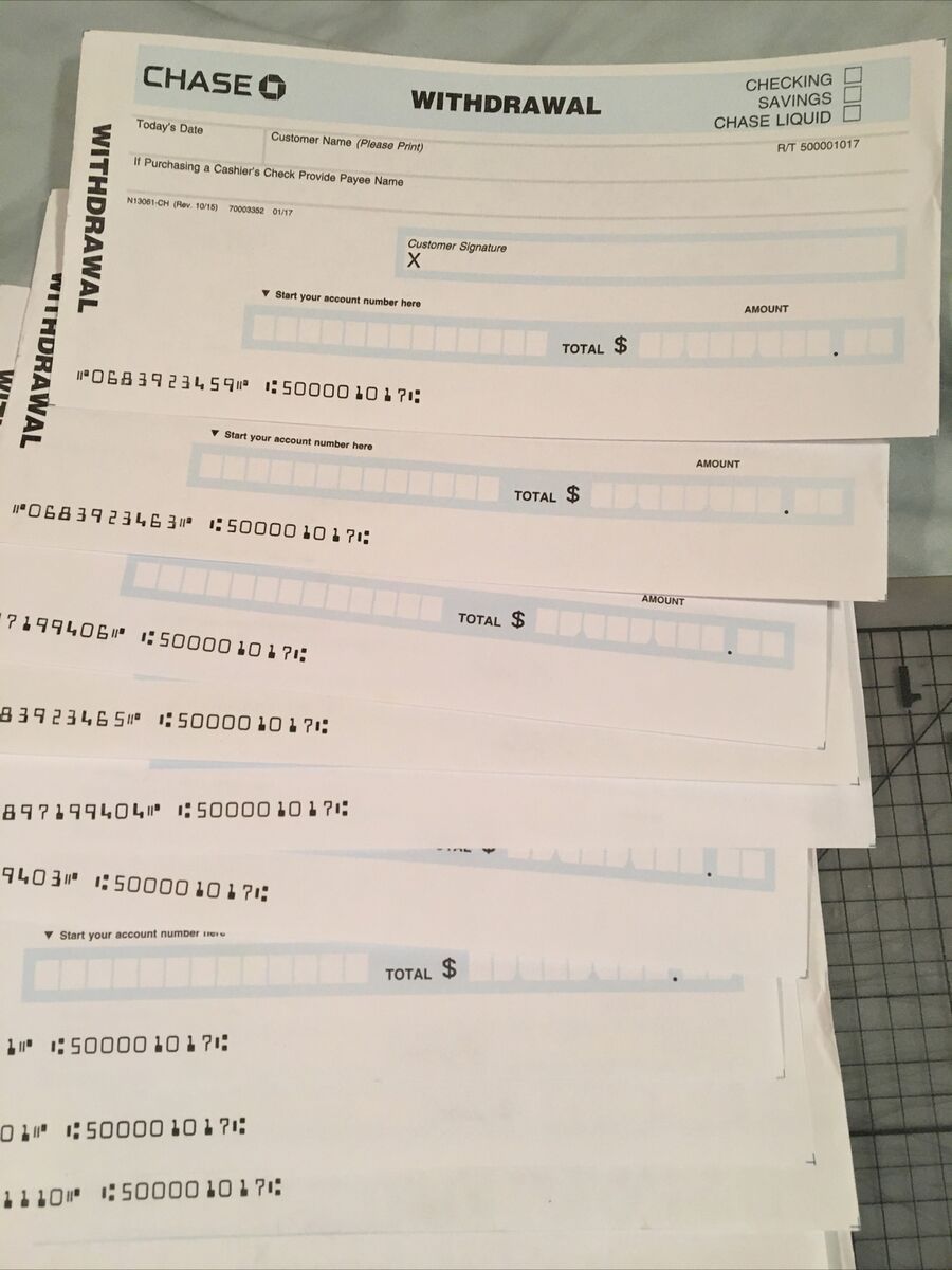 12 CHASE Banking Withdrawal Slips Drive Through Or Lobby Bank Universal blank