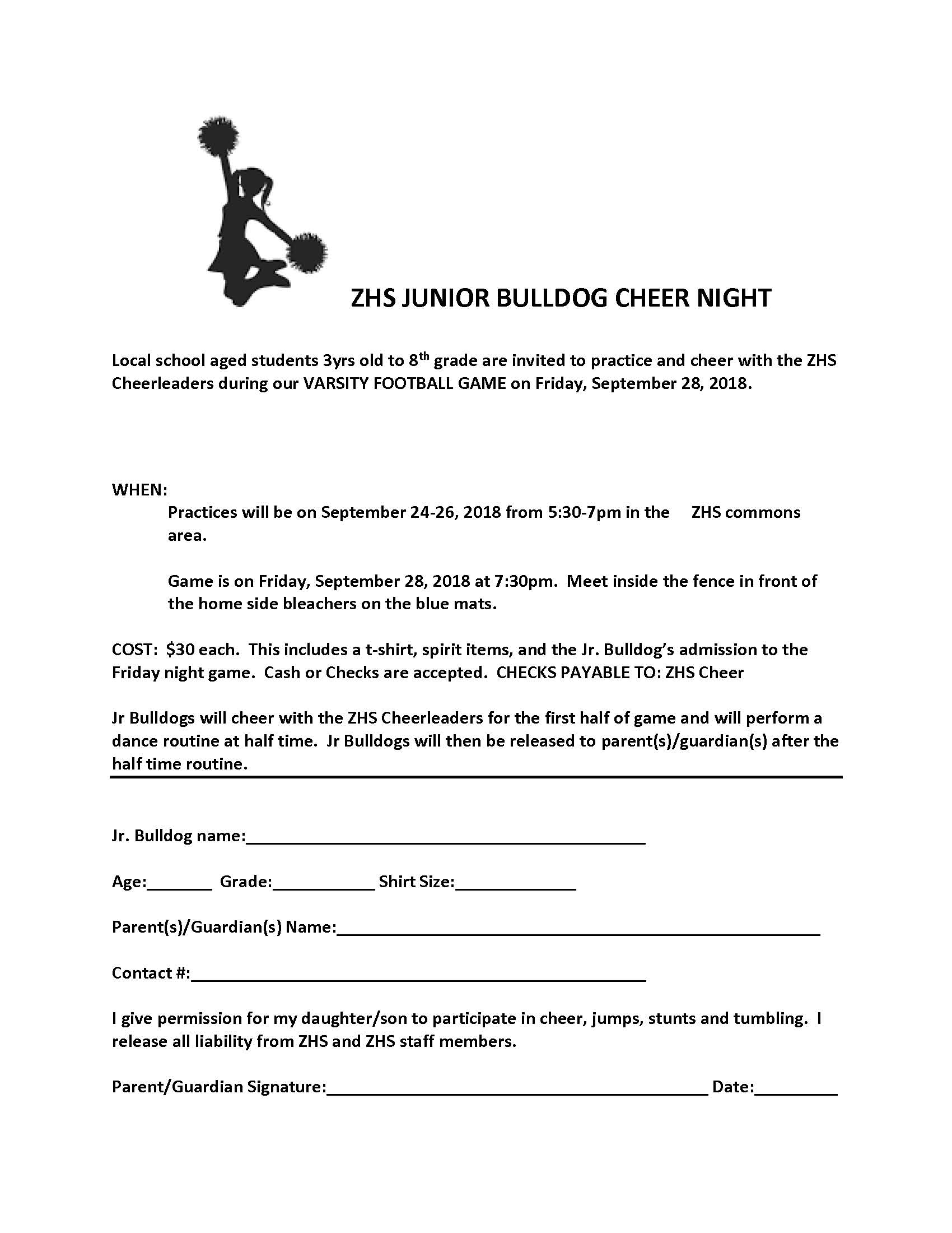 Cheerleading Permission Slip Template