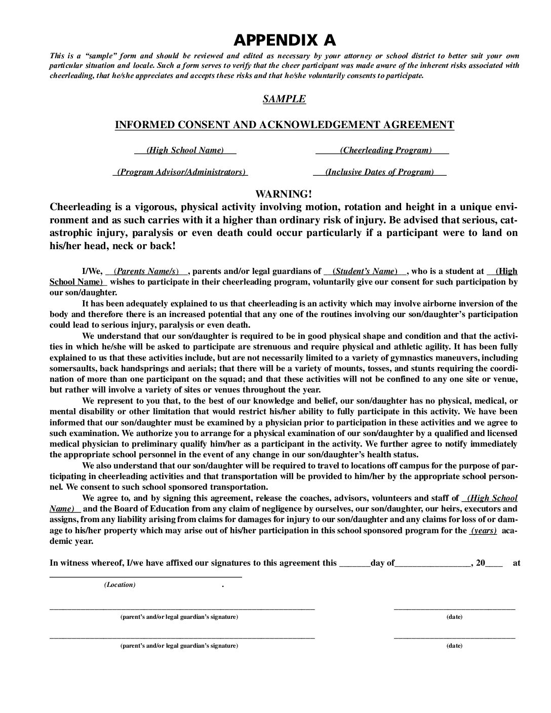 Cheerleading Waiver FORM Ppt Download