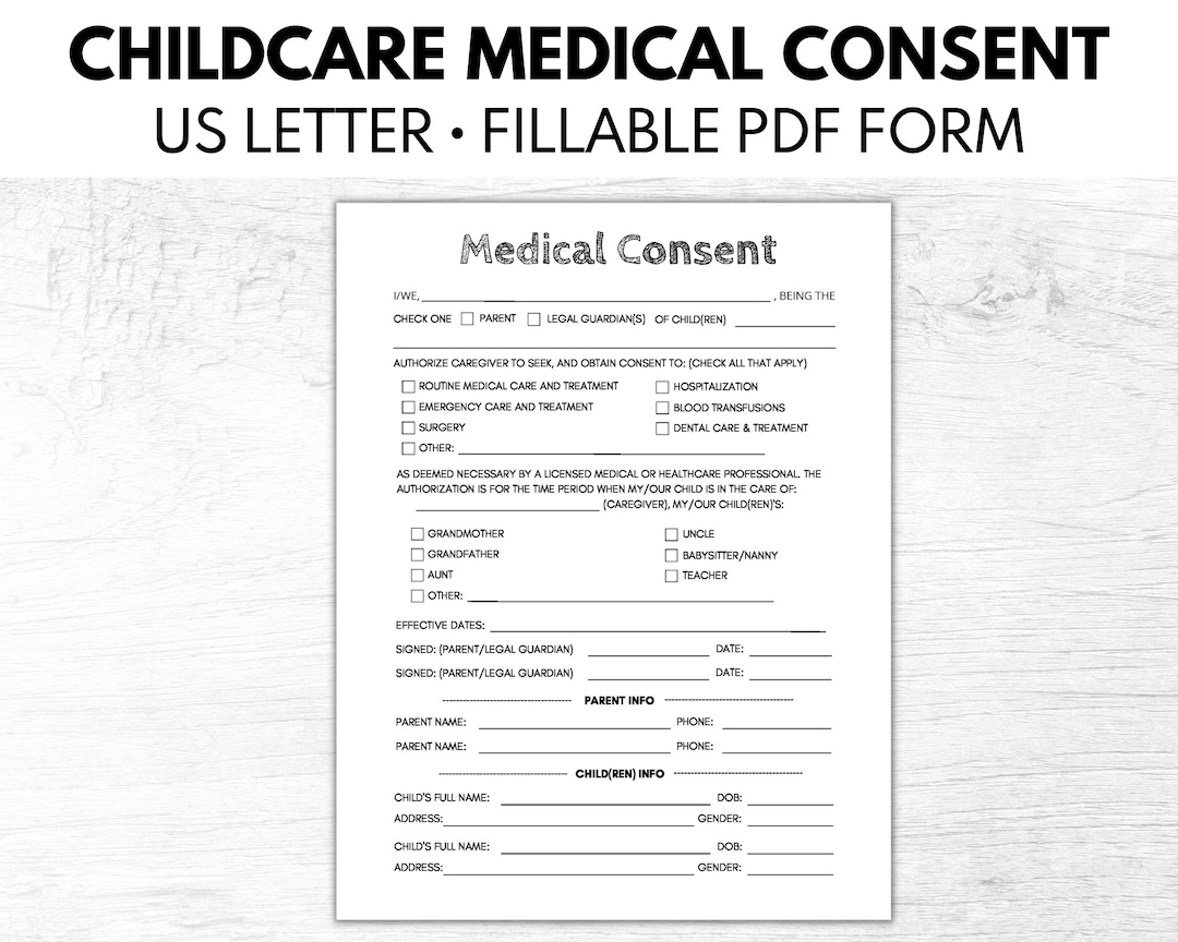 Childcare Medical Consent Form Babysitter Information Childcare Planner In Case Of Emergency Fillable PDF Etsy UK