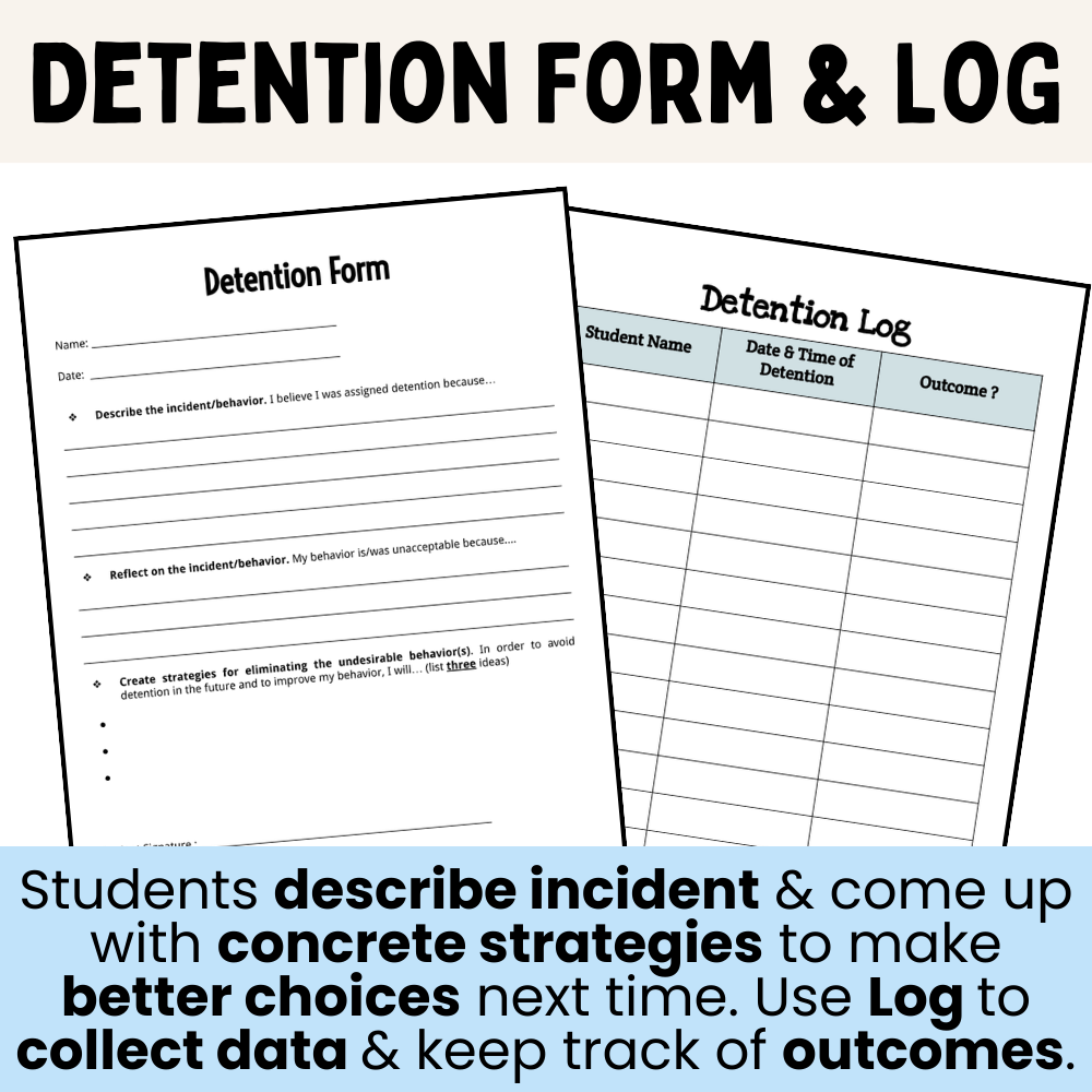 Printable Detention Sign in Sheet Student Behavior Log Classroom Management Form PDF Download Teacher Resource Etsy