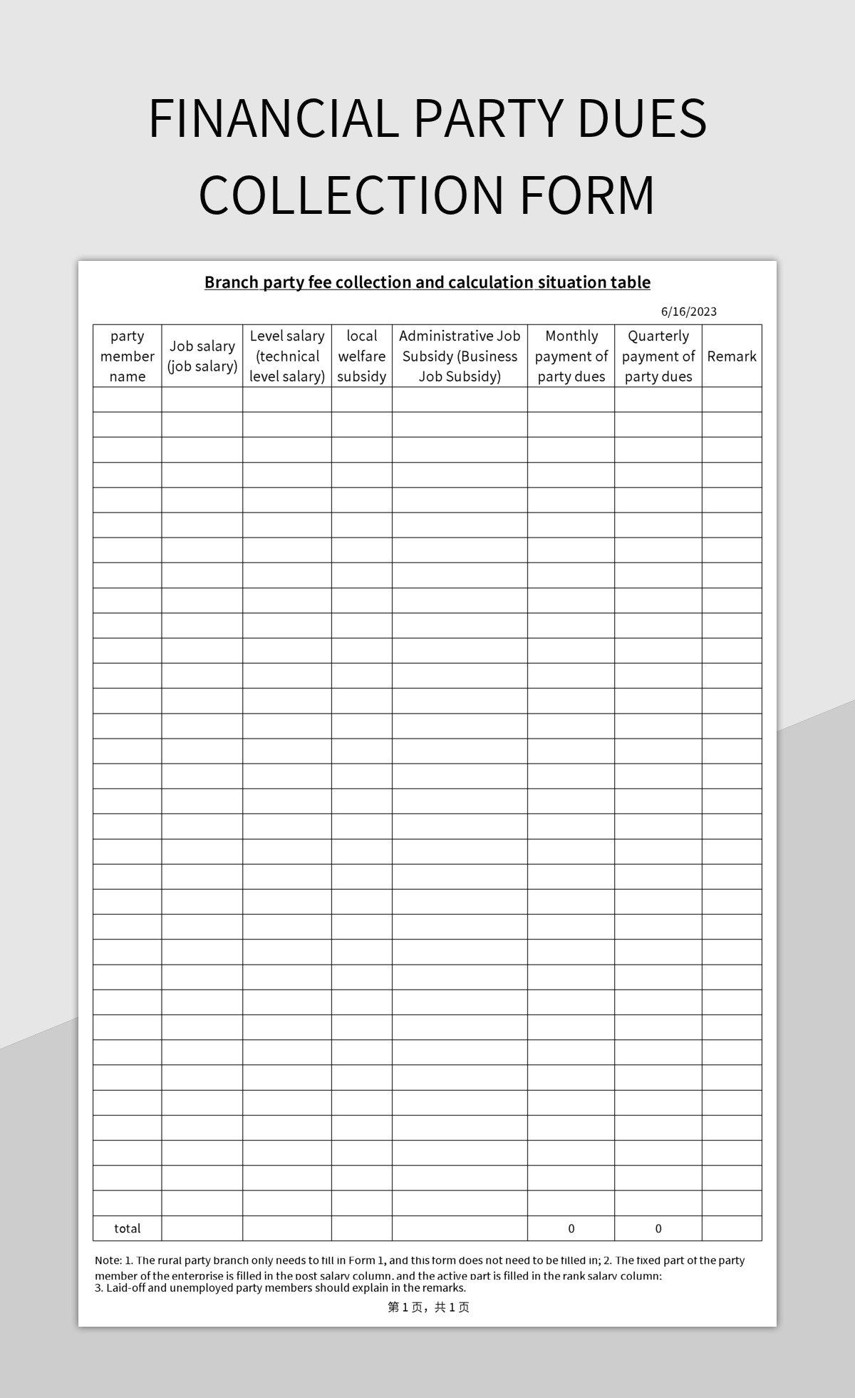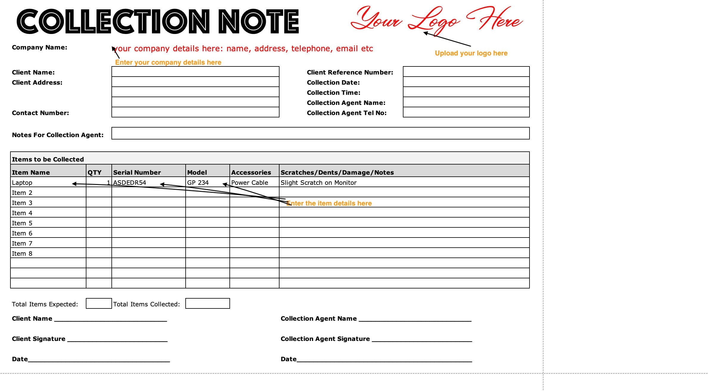 Collection Slip Template