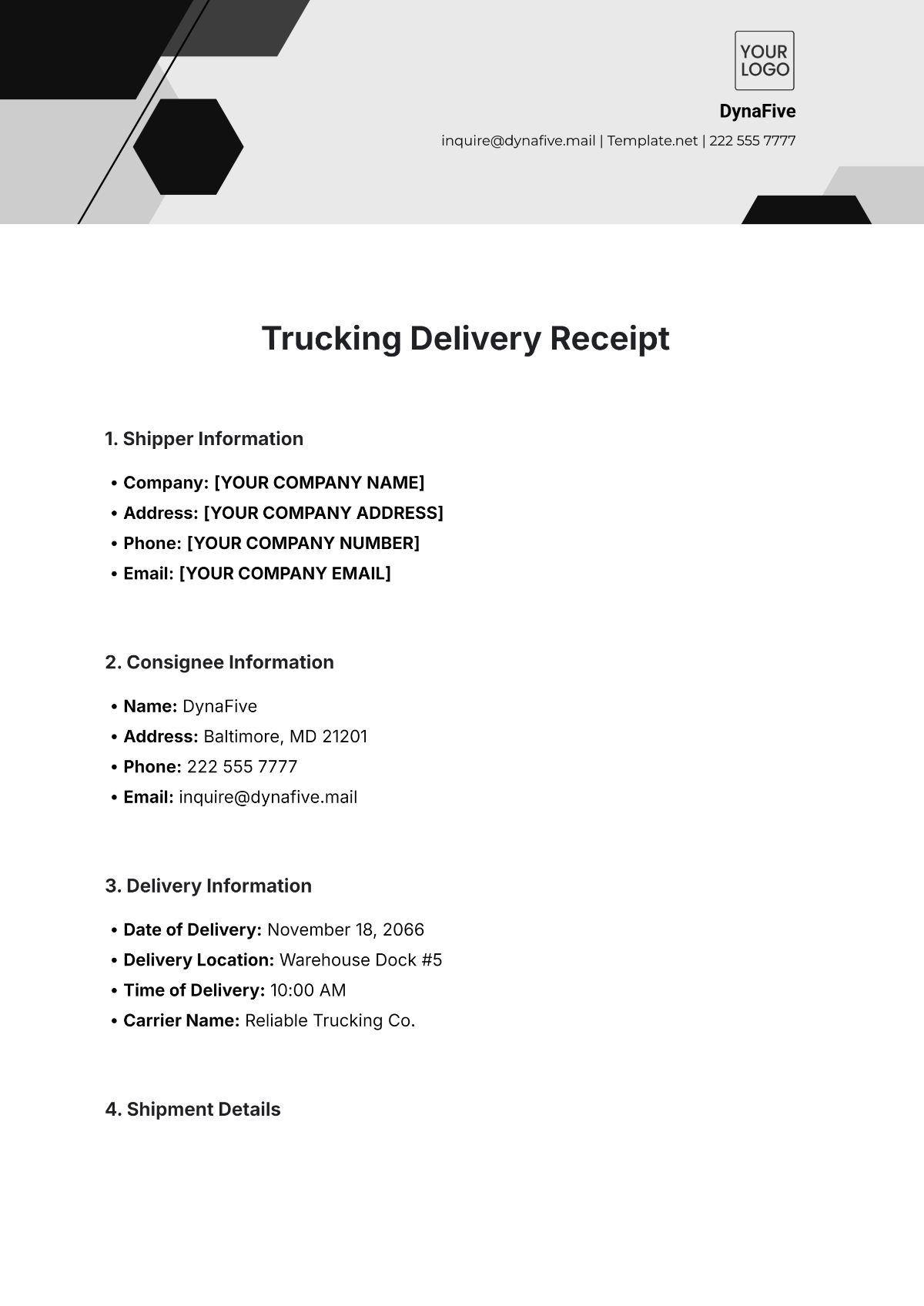 Free Trucking Delivery Receipt Template To Edit Online