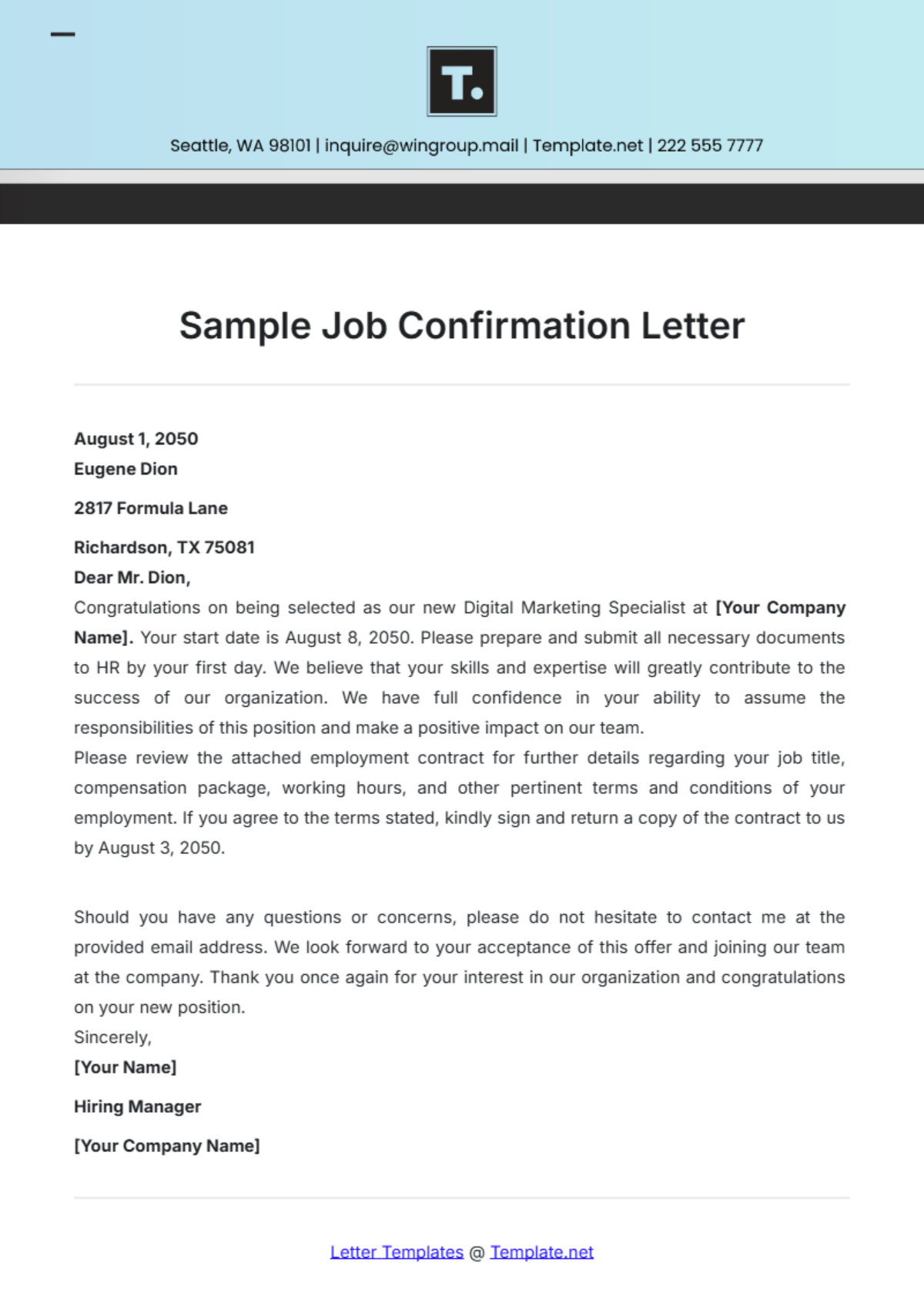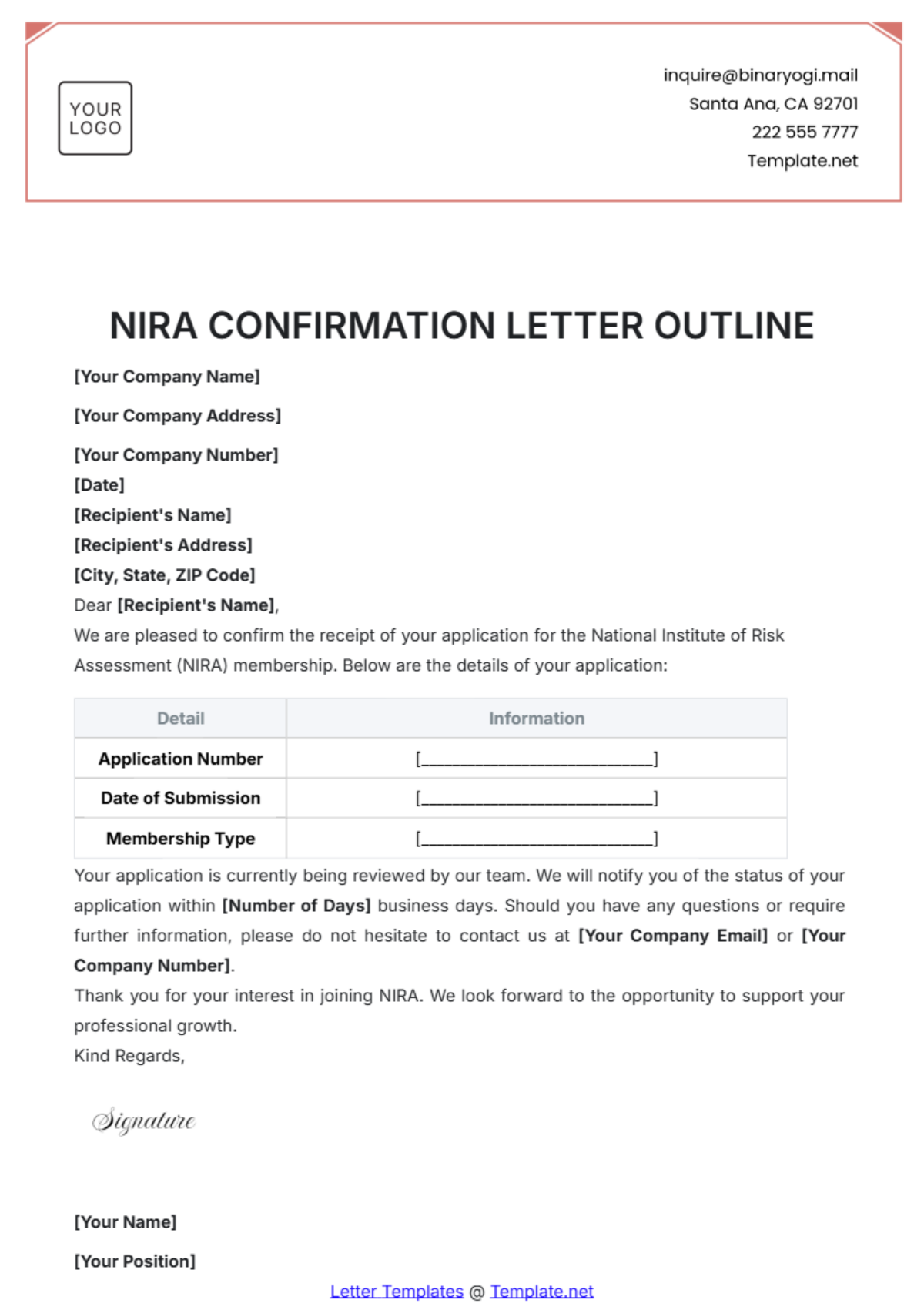 Free Confirmation Letter Templates Editable And Printable