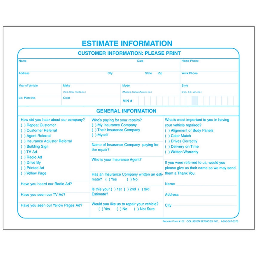 Customer Information Slip Template