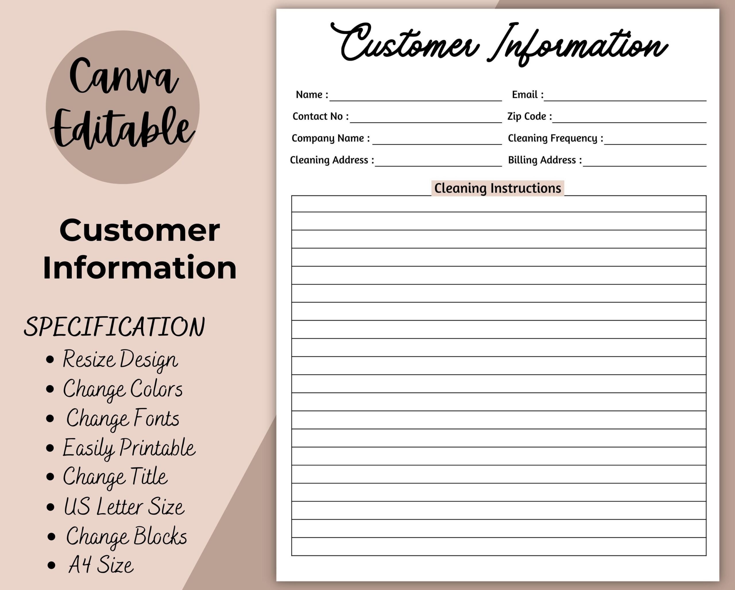 Customer Information Template Printable Customer Info Log
