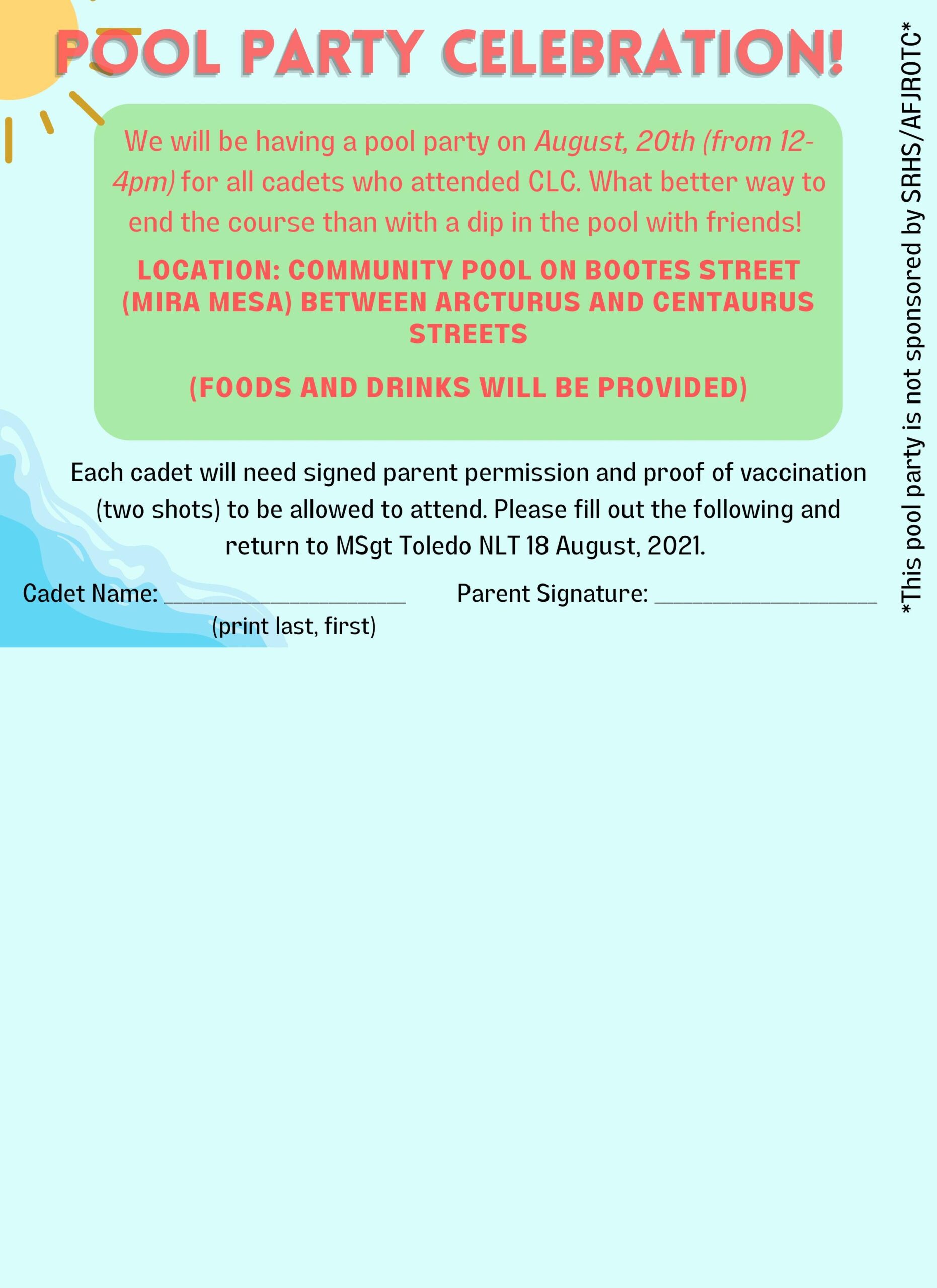 CA 935th Scripps Ranch HS AFJROTC Pool Party Permission Slip