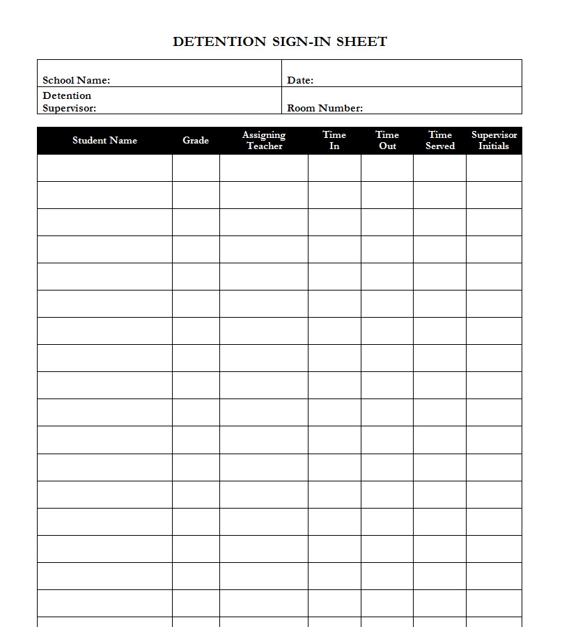 Printable Detention Sign in Sheet Student Behavior Log Classroom Management Form PDF Download Teacher Resource Etsy