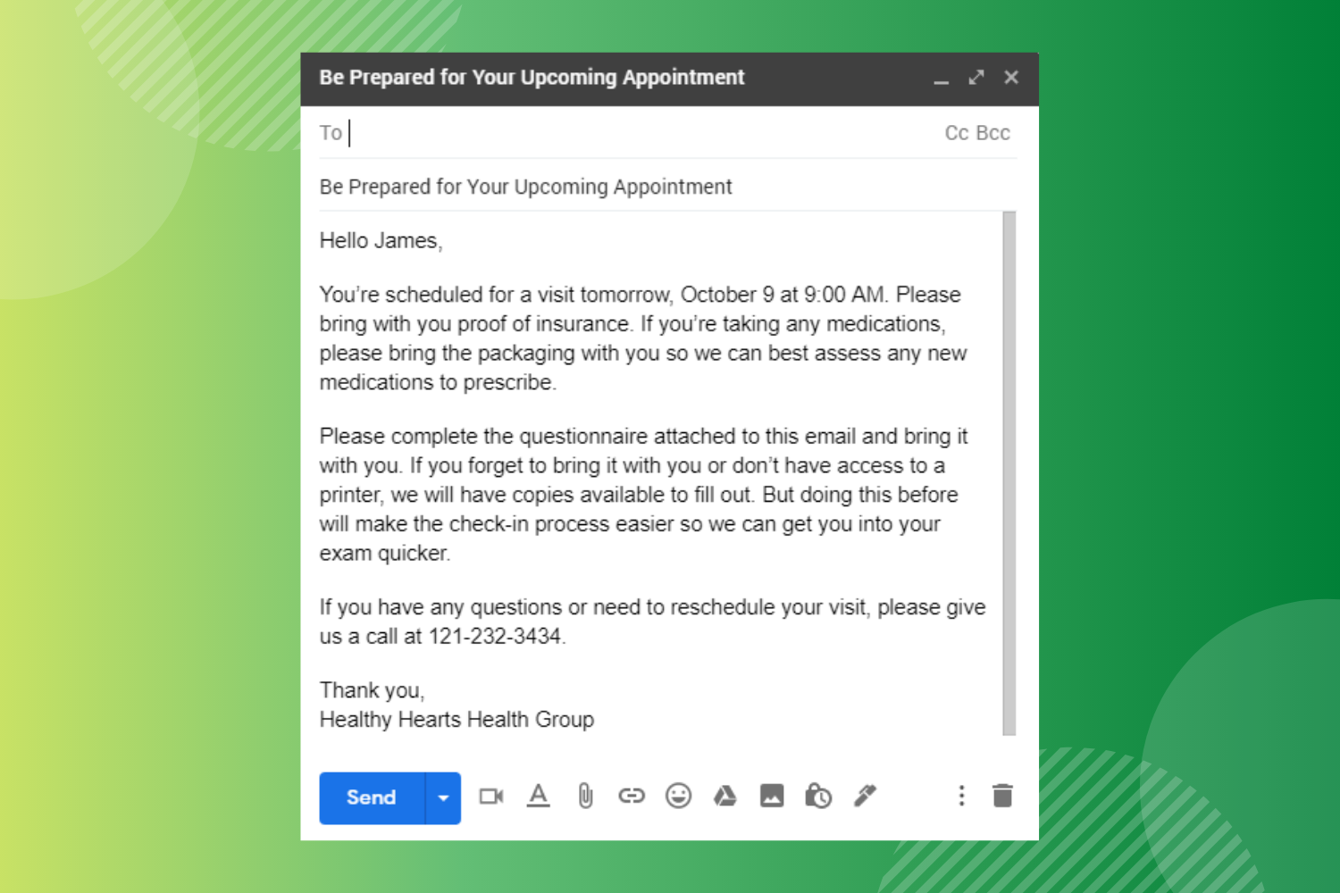 Free Patient Check Up Doctor Appointment Reminder Letter Template To Edit Online