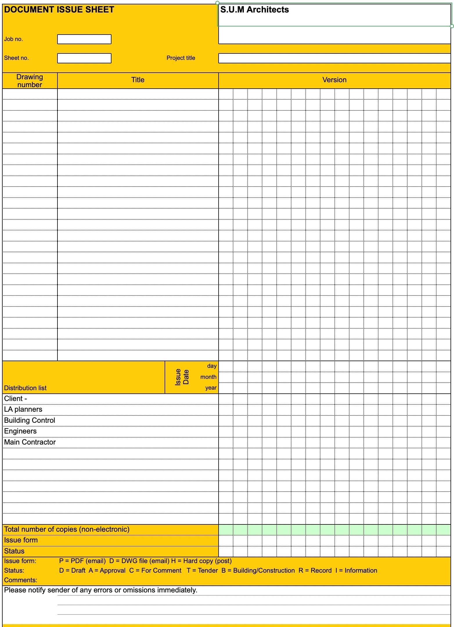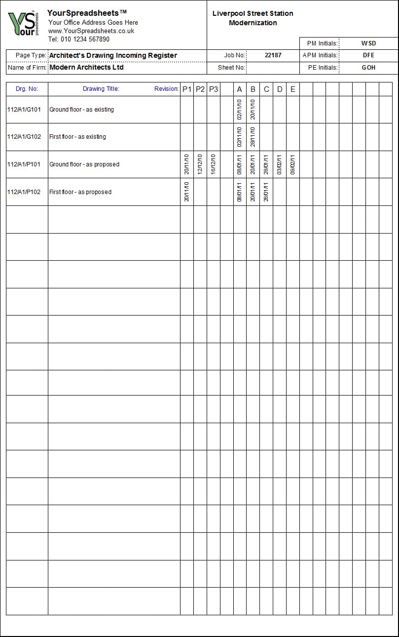 FREE Drawing Register Template Project Manager Store
