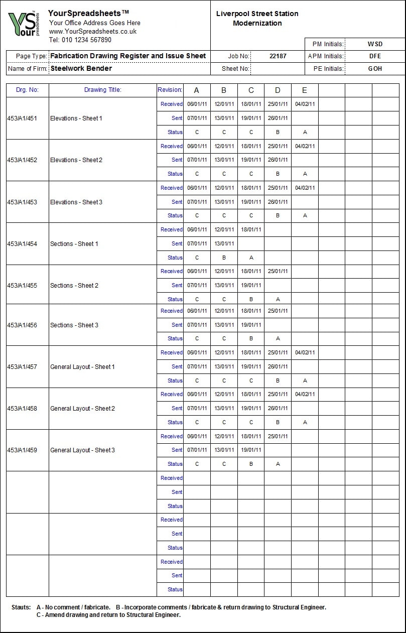 Drawing Issue Sheet Template Drawing Register Microsoft Excel Digital Template