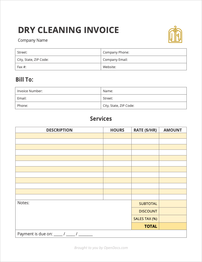 Free Dry Cleaning Invoice Template PDF WORD EXCEL