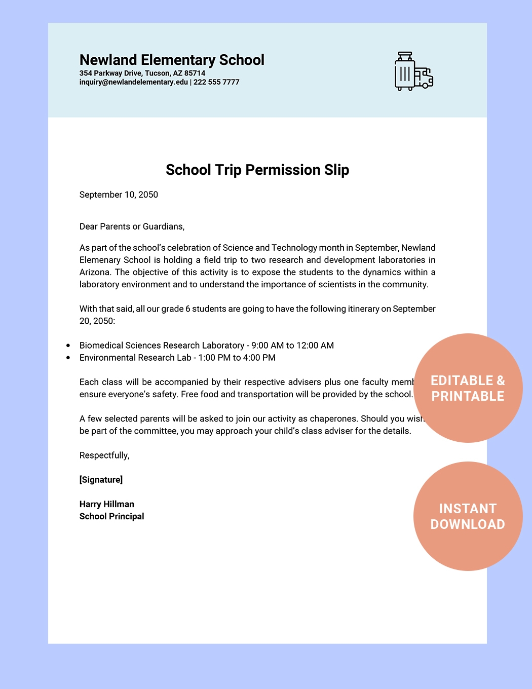 Elementary Permission Slip Template