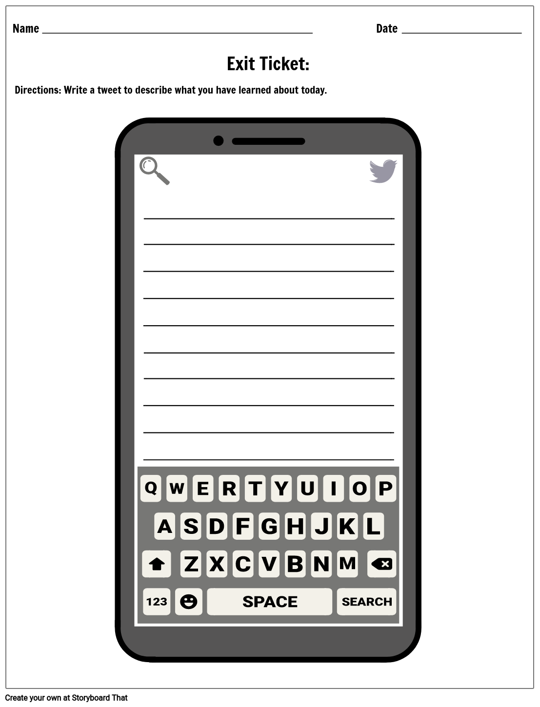 Twitter Search Bar Exit Ticket Template Storyboard