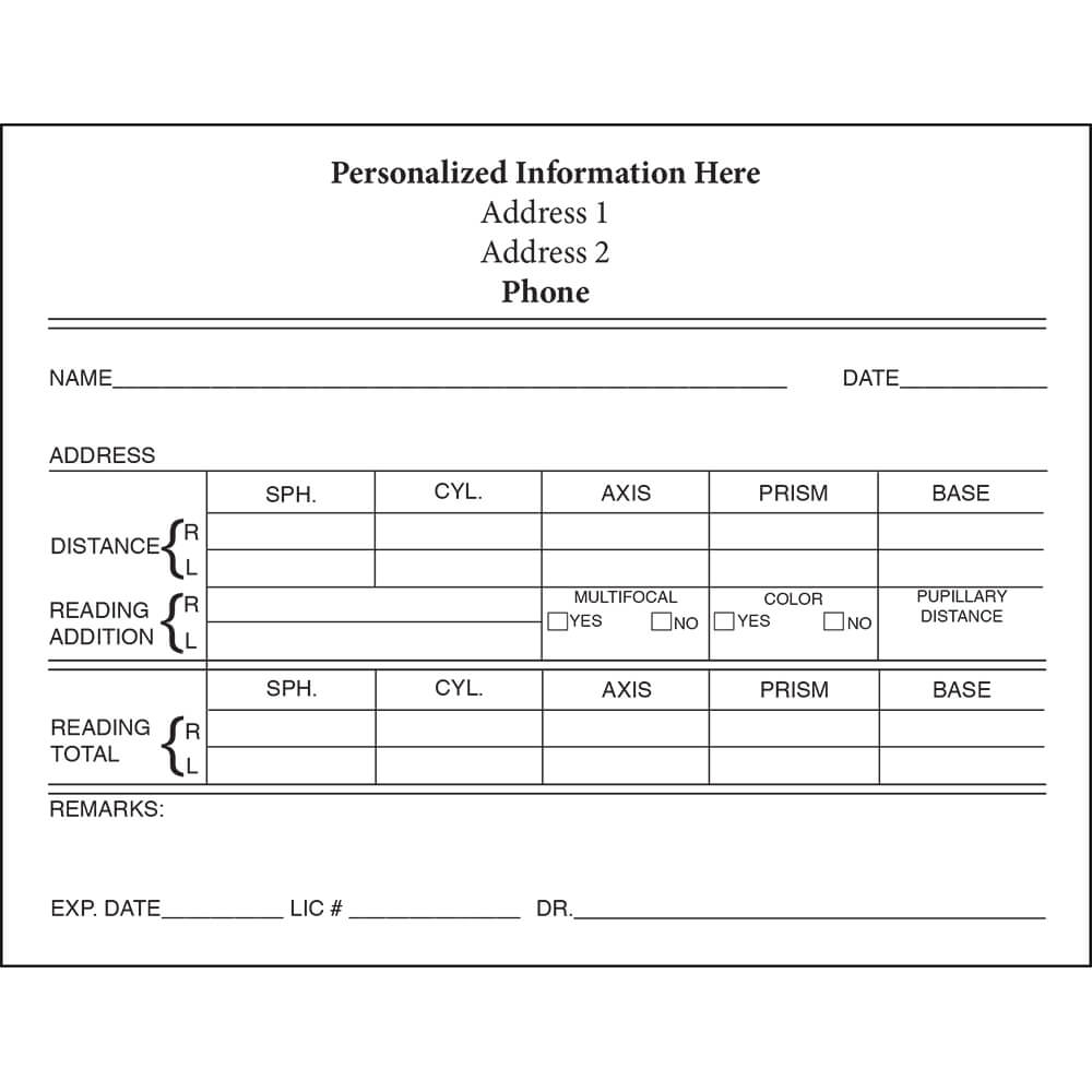 Eyeglass Prescription Pads Imprinted Amcon Labs