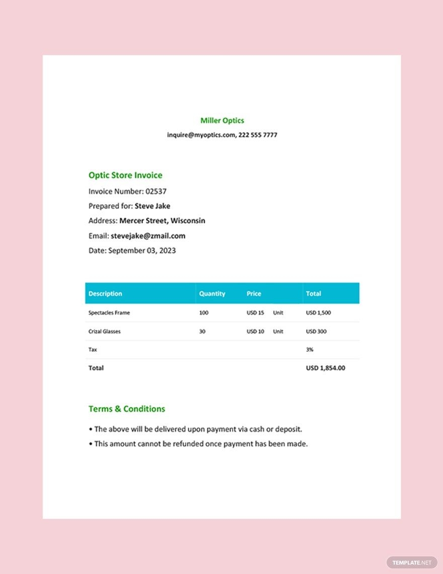 Optical Store Invoice Template In Google Docs Illustrator PSD