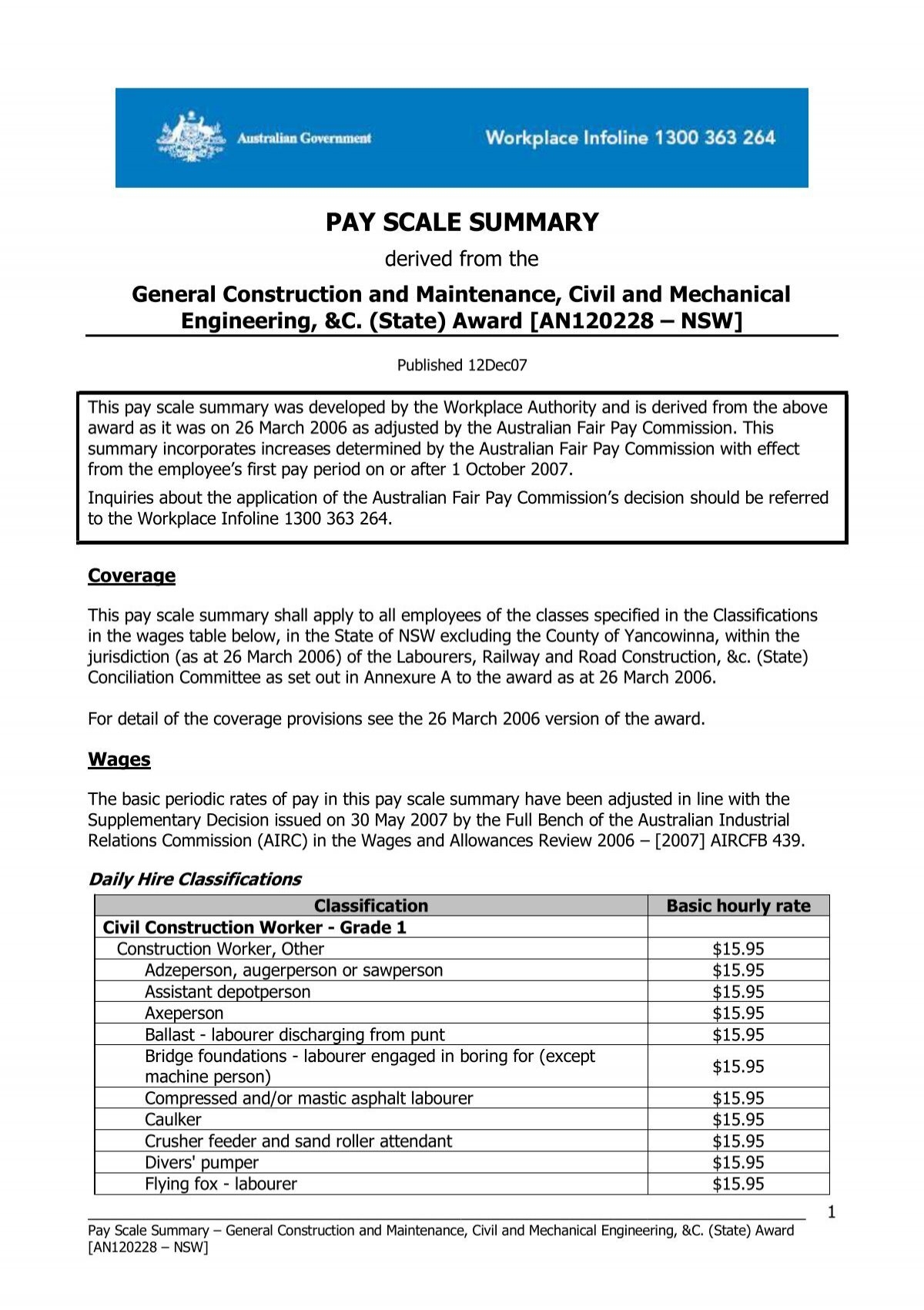 PAY SCALE SUMMARY Fair Work Ombudsman