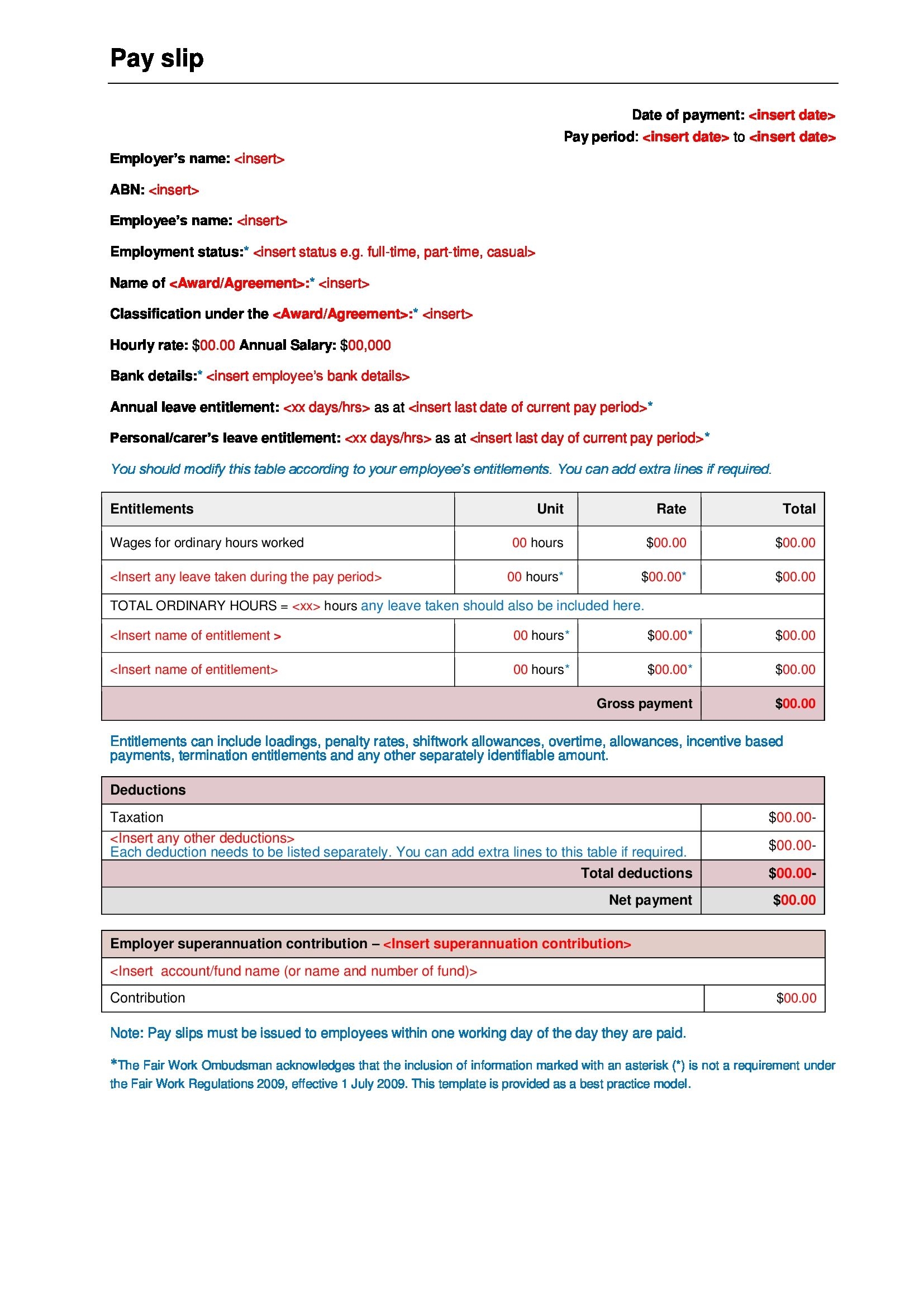 Are you an employer looking for a simple and effective way to provide pay slips to your employees? Look no further than the Fair Work Ombudsman Pay Slip Template. This template is designed to help businesses streamline the process of issuing pay slips to their employees.