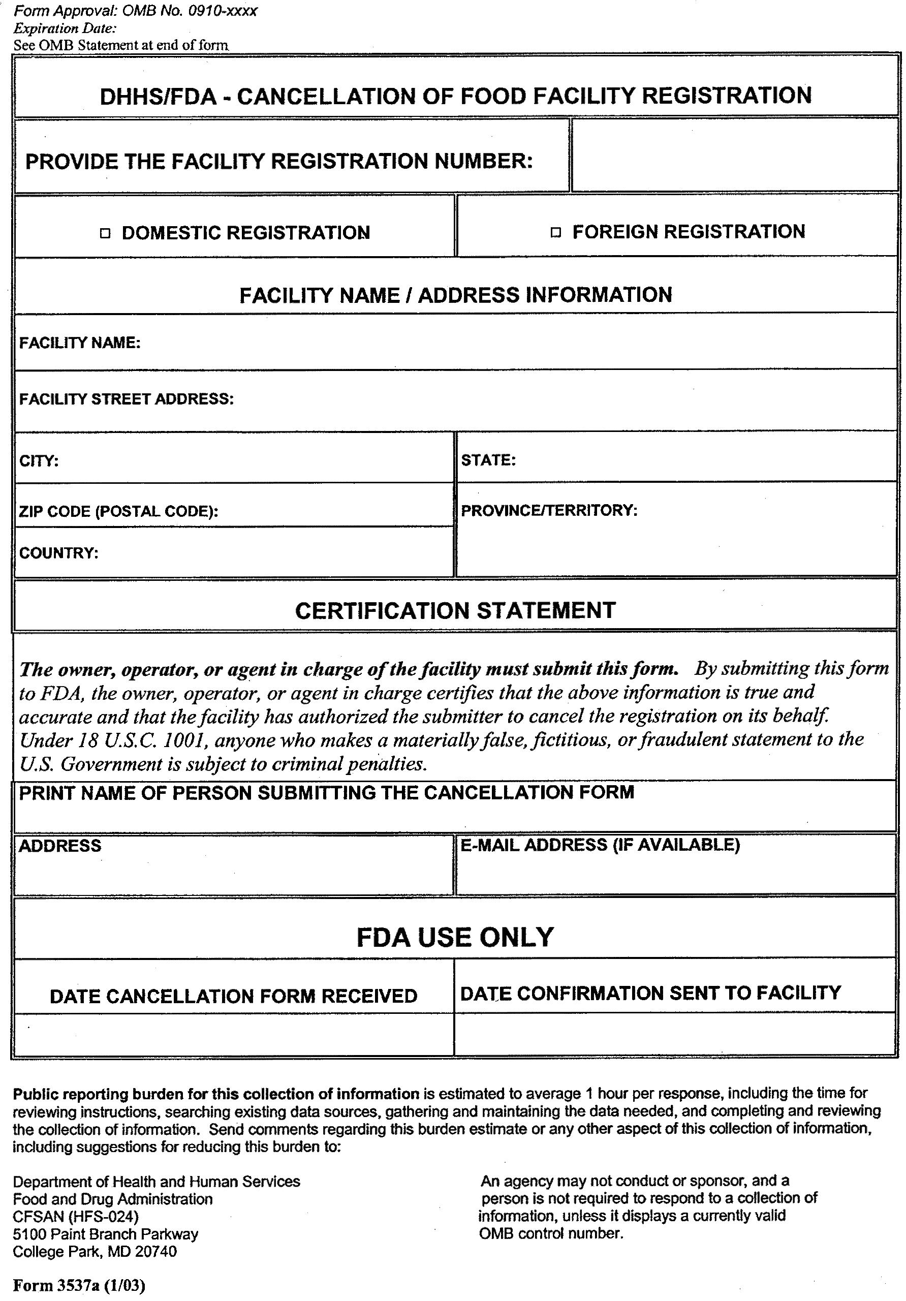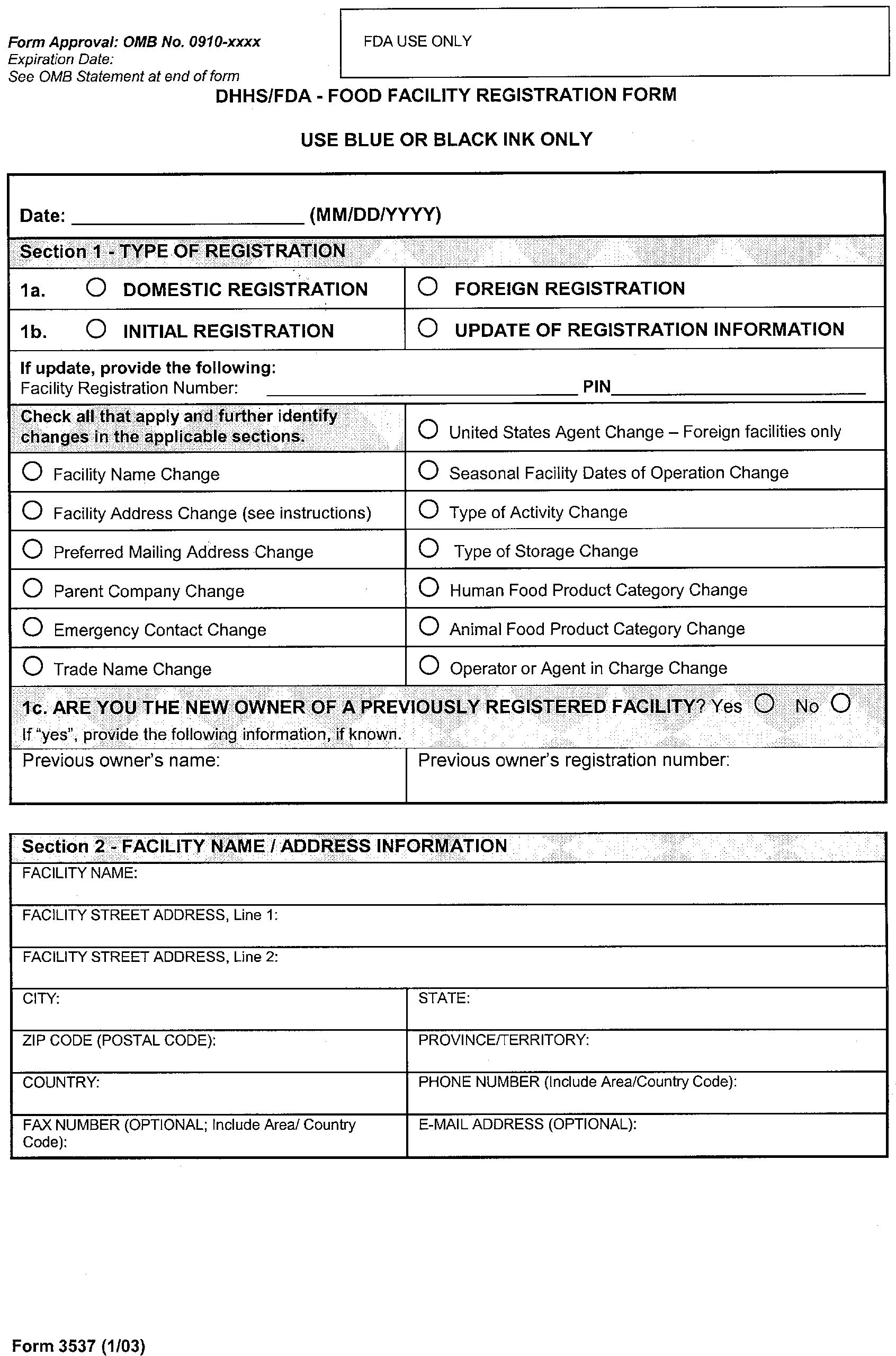 Federal Register Registration Of Food Facilities Under The Public Health Security And Bioterrorism Preparedness And Response Act Of 2002