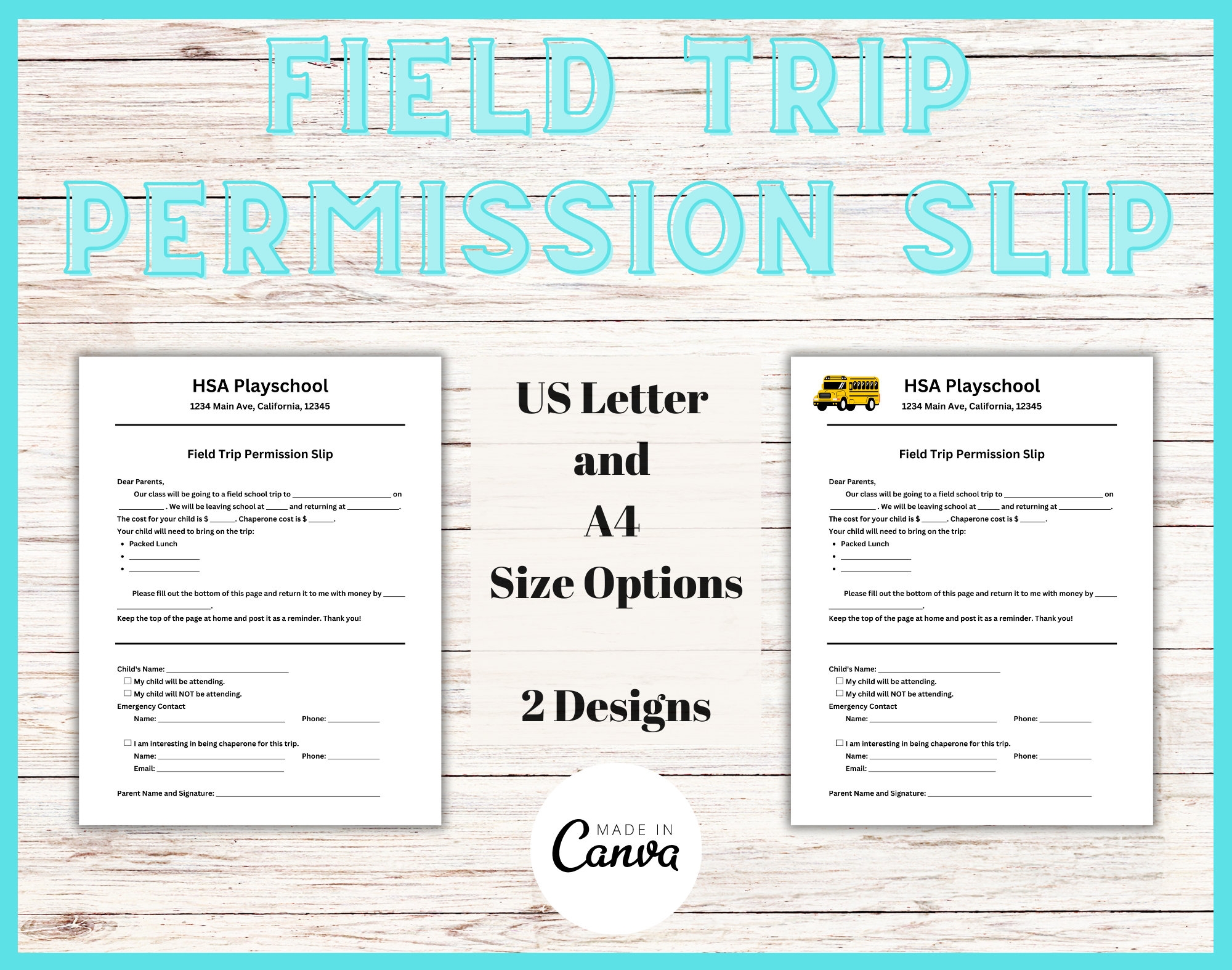 Make sure to leave space for parents to fill in emergency contact details and any medical information that may be relevant for the trip.