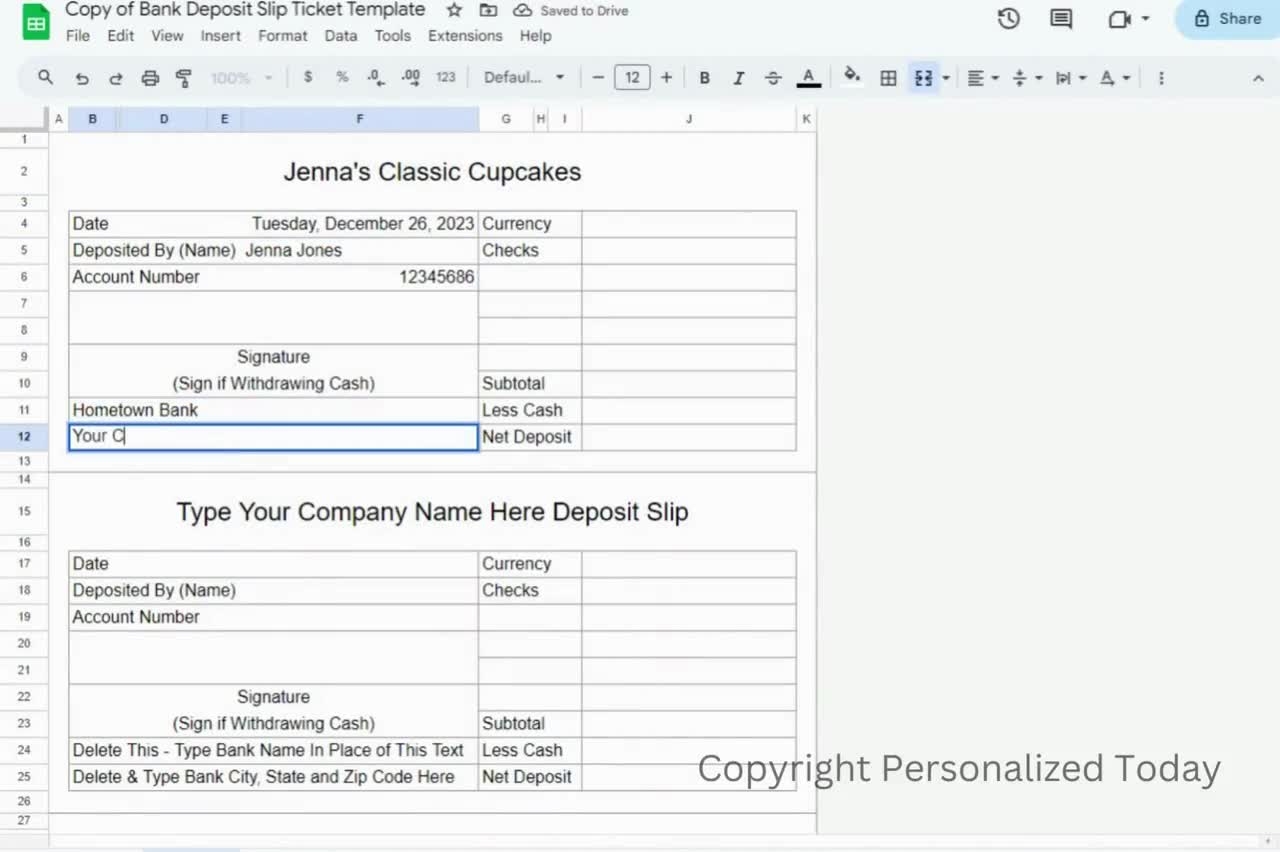 Bank Deposit Tickets Template Text Editable Template For Google Sheets Automated Totals Calculations Customizable Deposit Slip Forms
