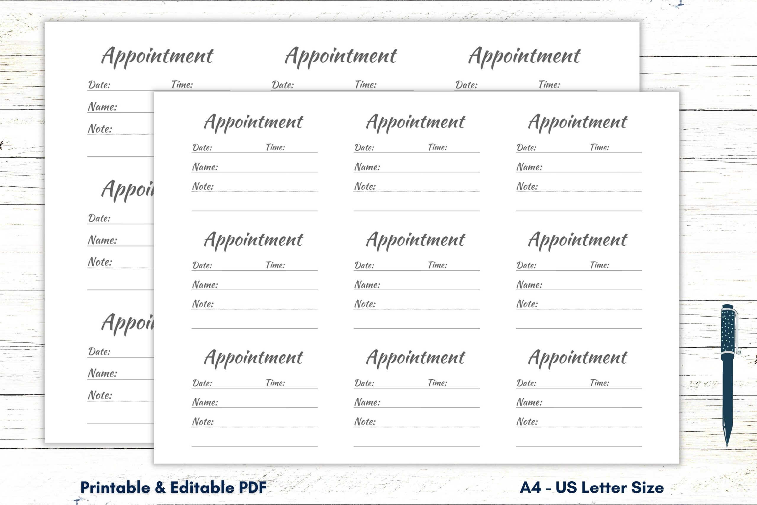 Appointment Card Template Appointment Card Printable Appointment Cards Appointment Reminder Cards Appointment Planner A4 US Letter PDF Etsy UK