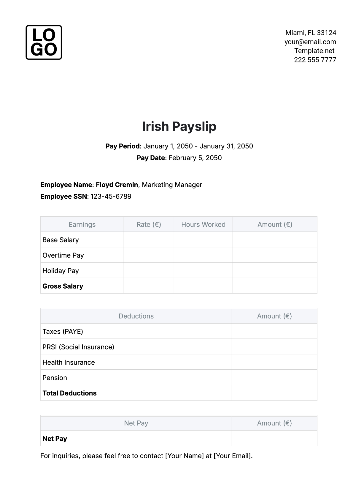 Payslip Template Free Download Ireland
