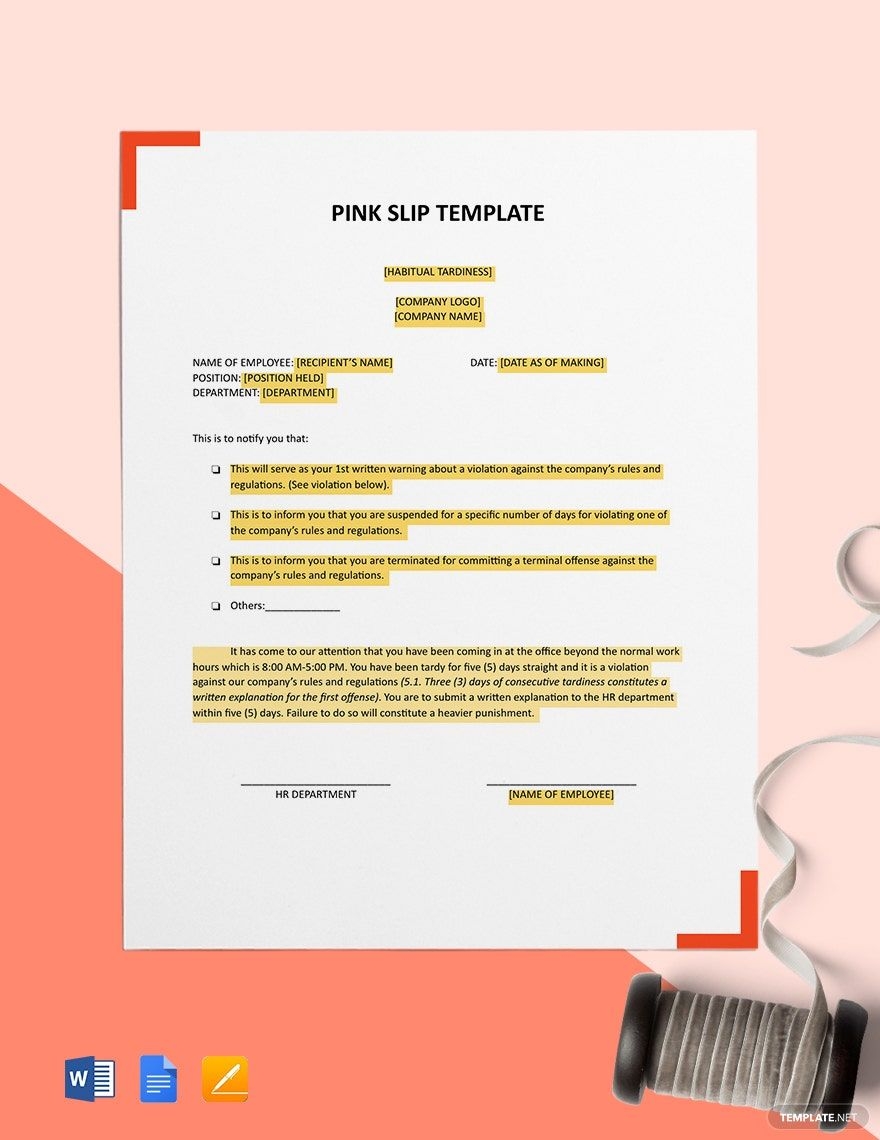 Pink Slip Template In Word Google Docs Pages PDF Download Template