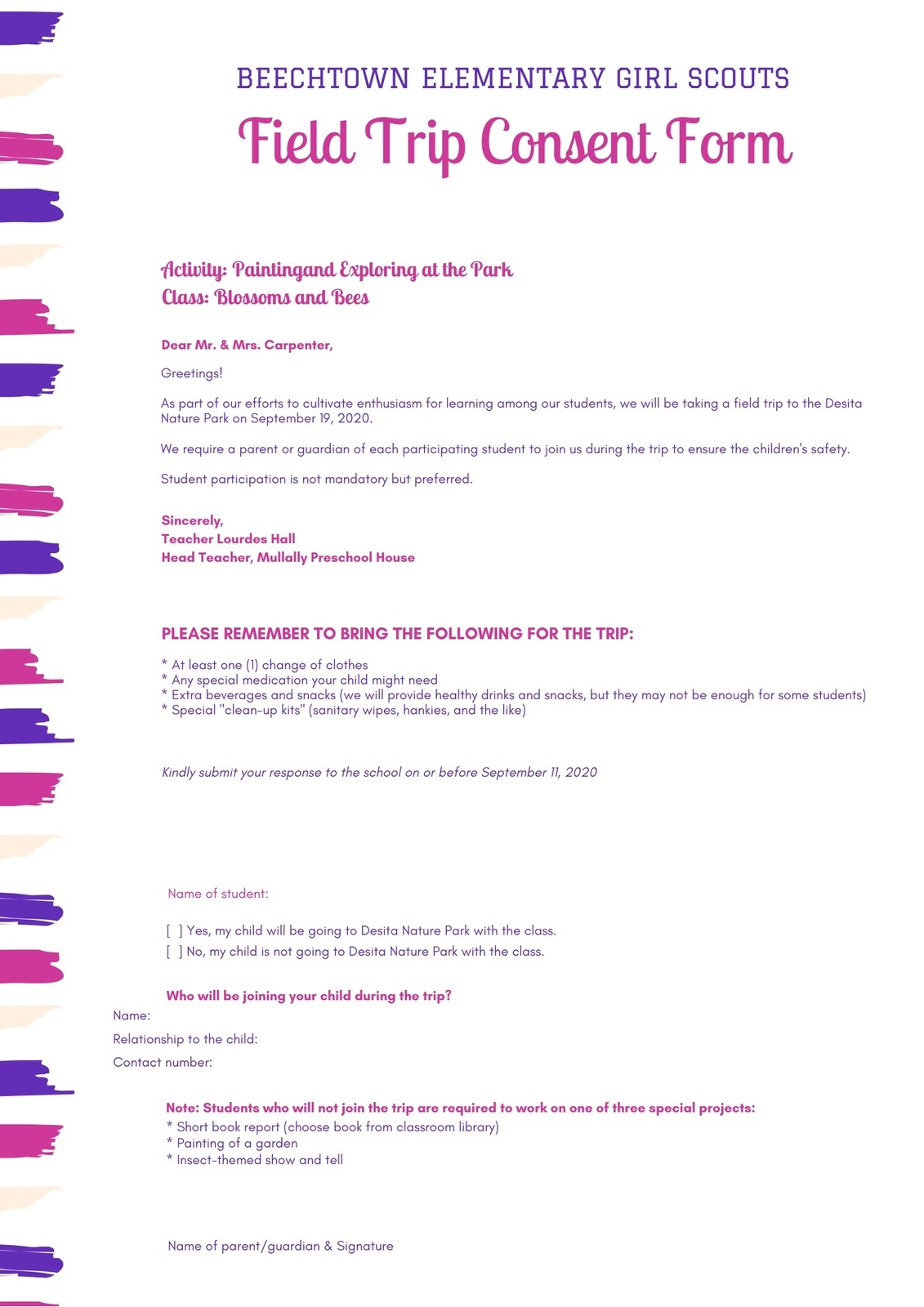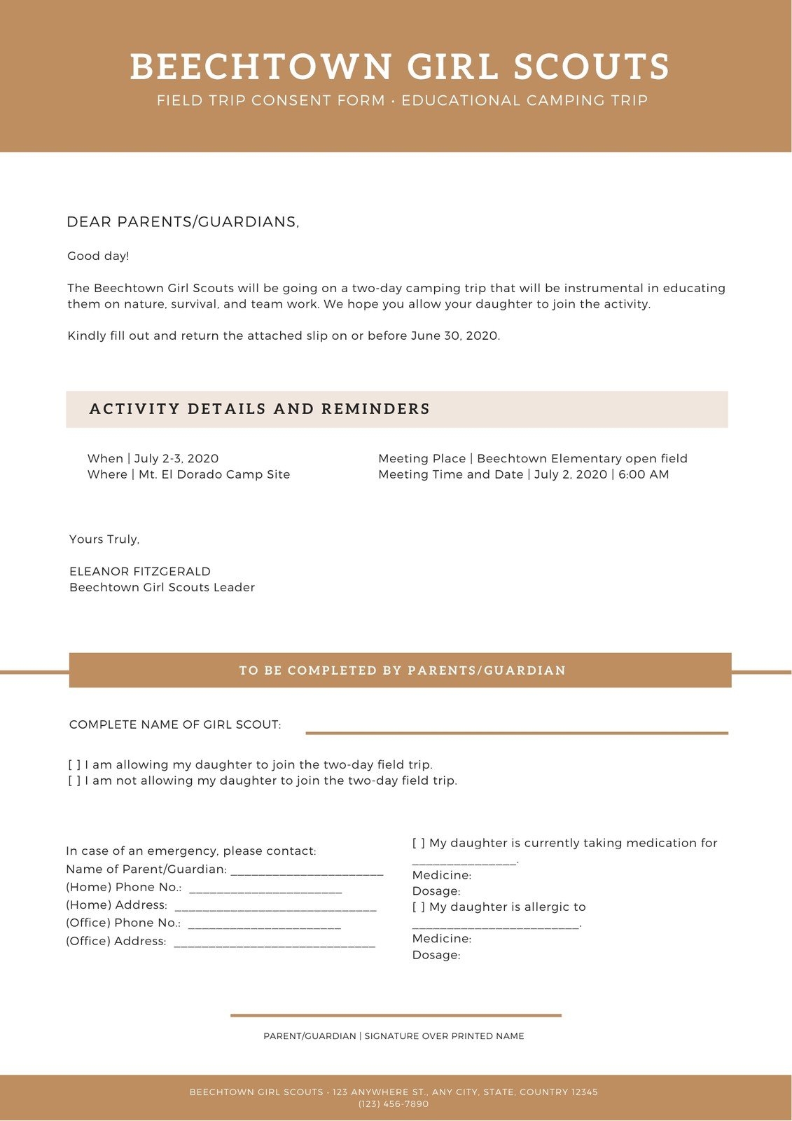 Simply download our template, fill in the blanks, and print out as many copies as you need for your Girl Scout troop. It’s that easy! Say goodbye to the hassle of creating permission slips from scratch and focus on planning a fun and safe outing for your girls.