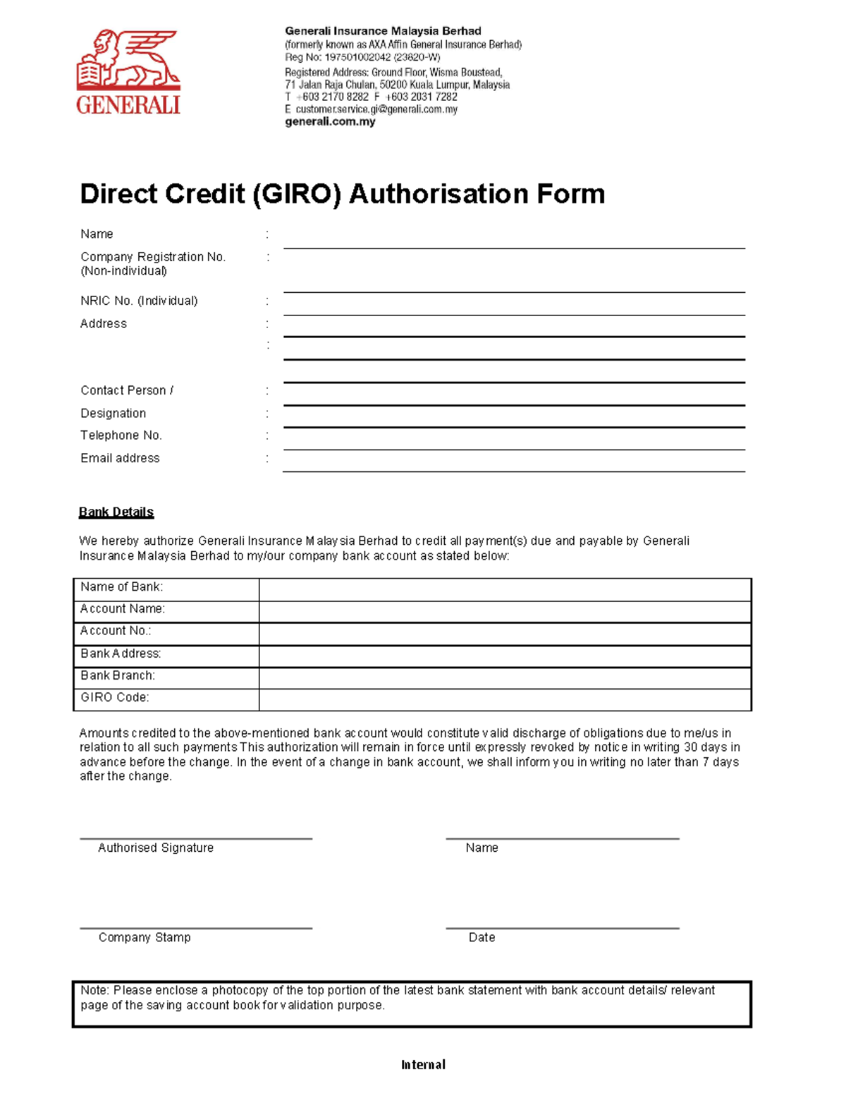 Claim GIRO Form Generali Mer Internal Direct Credit GIRO