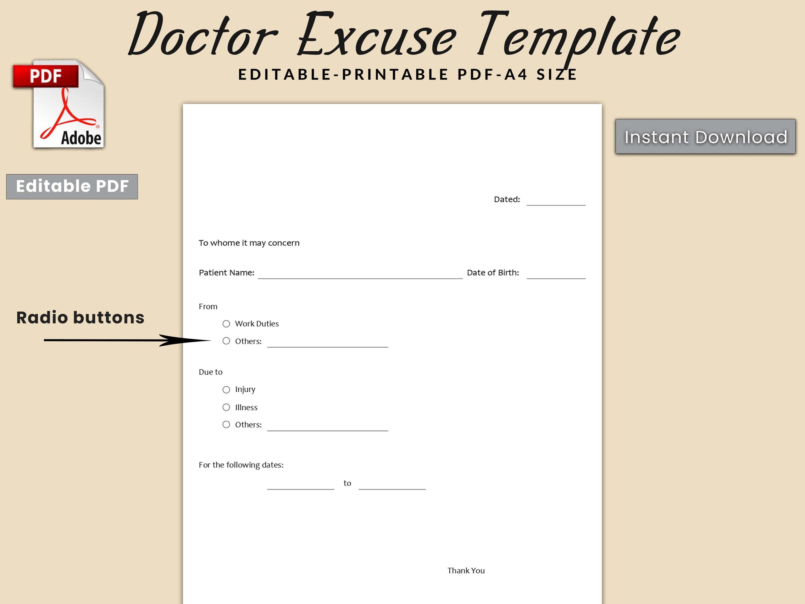 Doctor Excuse Template Medical Excuse Form Physician s Note Template Sick Leave Template Absence Excuse Form Medical Certificate Template Etsy