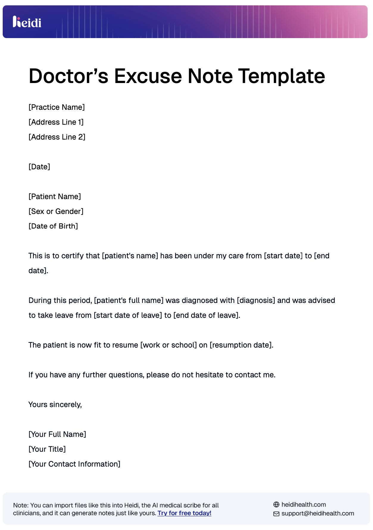 Doctors Note Template With Examples Heidi Health