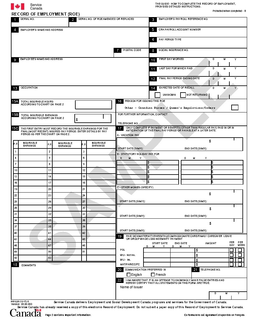 Employers How To Complete The Record Of Employment ROE Form Canada ca