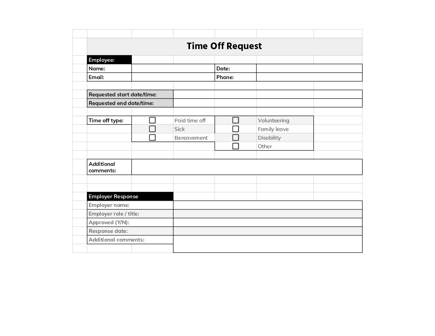 Time Off Request Template PDF Excel Word