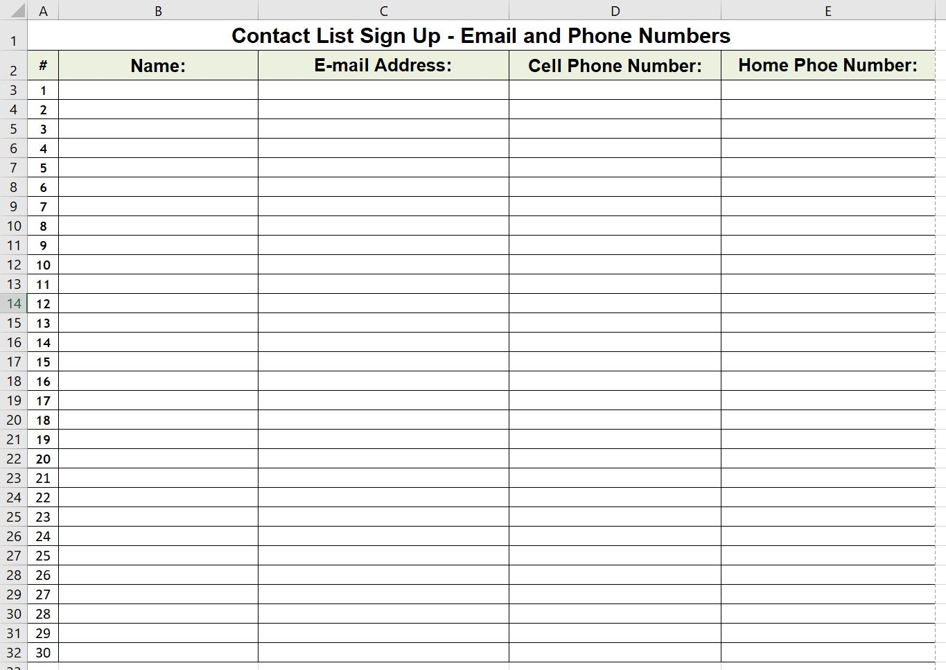 The Admin Helper Download Free Print Phone And Email Contact Sign Up List Template Excel PDF Format