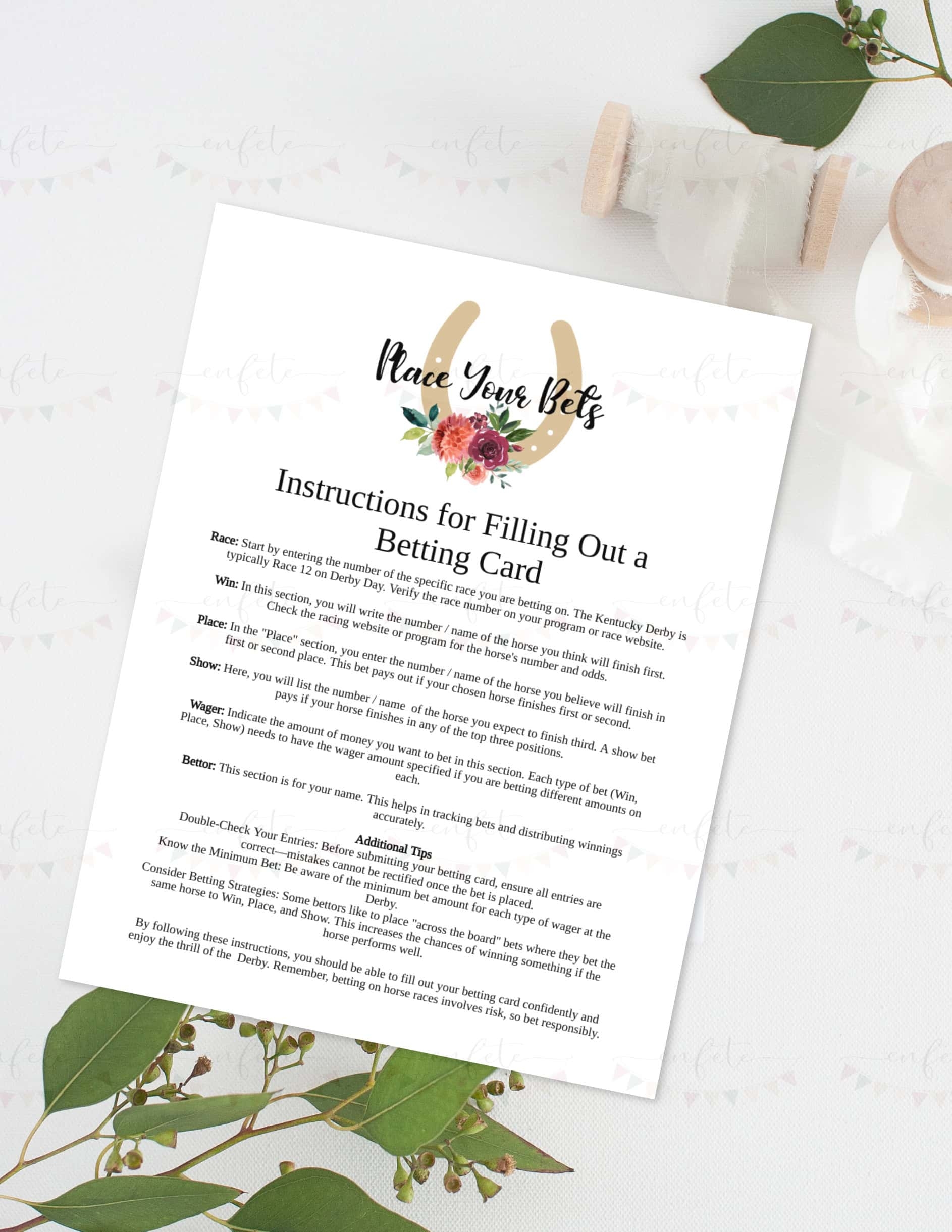 Kentucky Derby Horse Race Betting Card Template Printable File Derby Bet Cards Red Roses Wager Cards Kentucky Pool Bet Derby Games Etsy