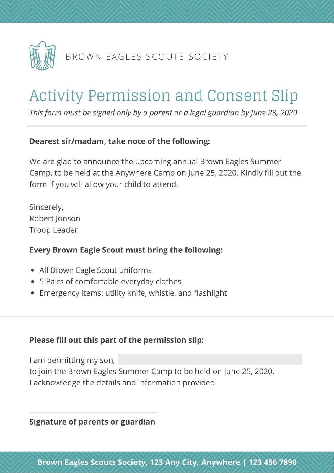 30 Permission Slip Templates Field Trip Scouts Generic