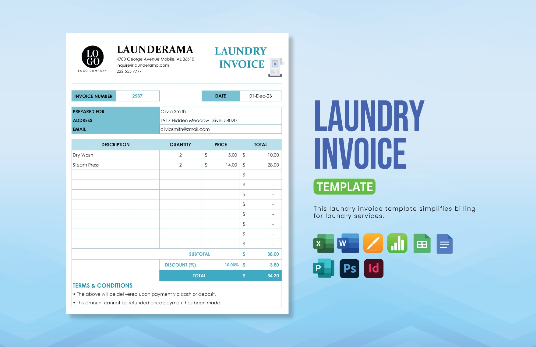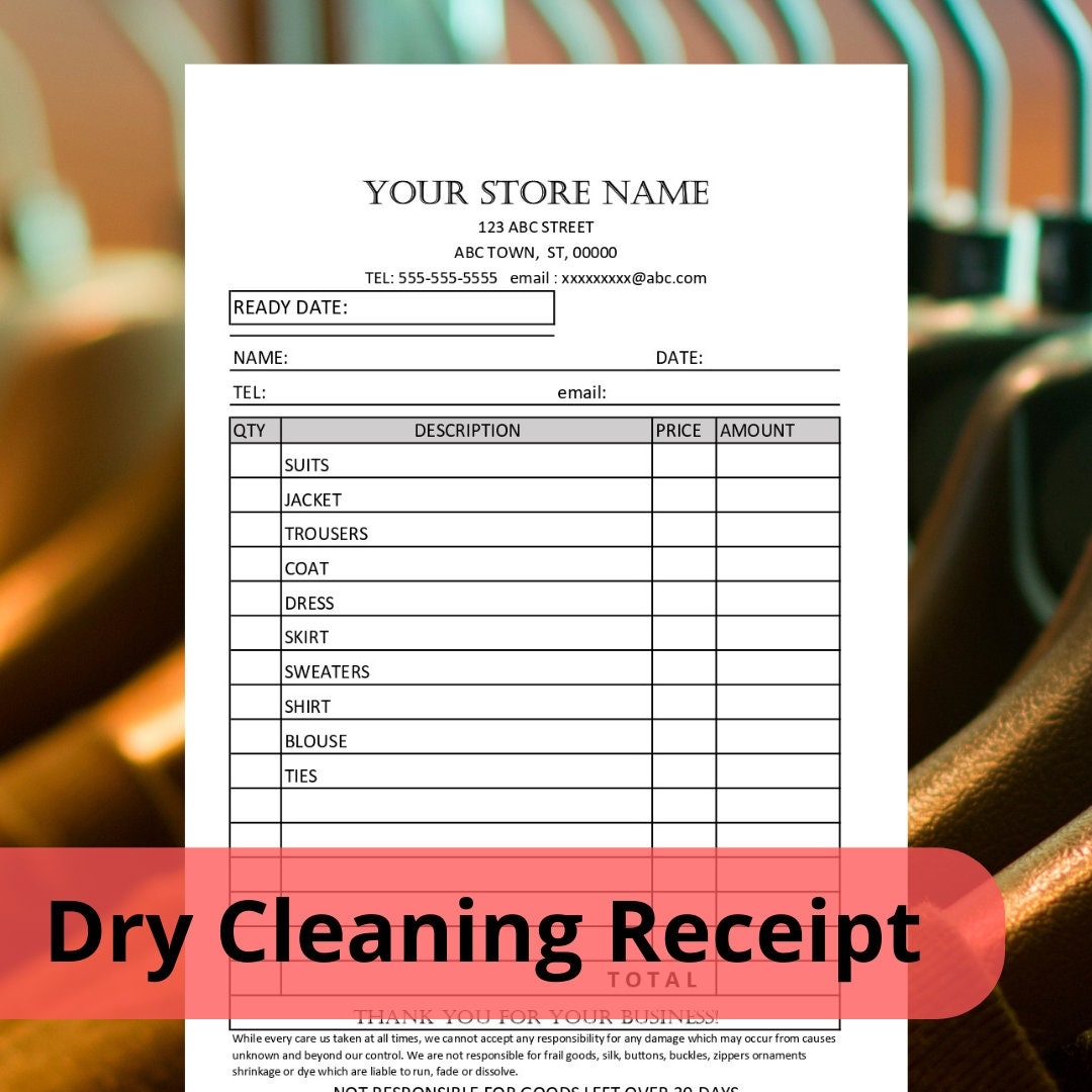 Dry Cleaner Receipt Template Editable Dry Cleaning Invoice Digital Download Excel Format Dry Cleaning Valet Laundry Etsy