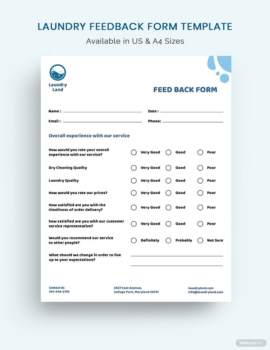 Laundry Feedback Form Template In Illustrator PSD InDesign Word Pages Publisher Google Docs Download Template